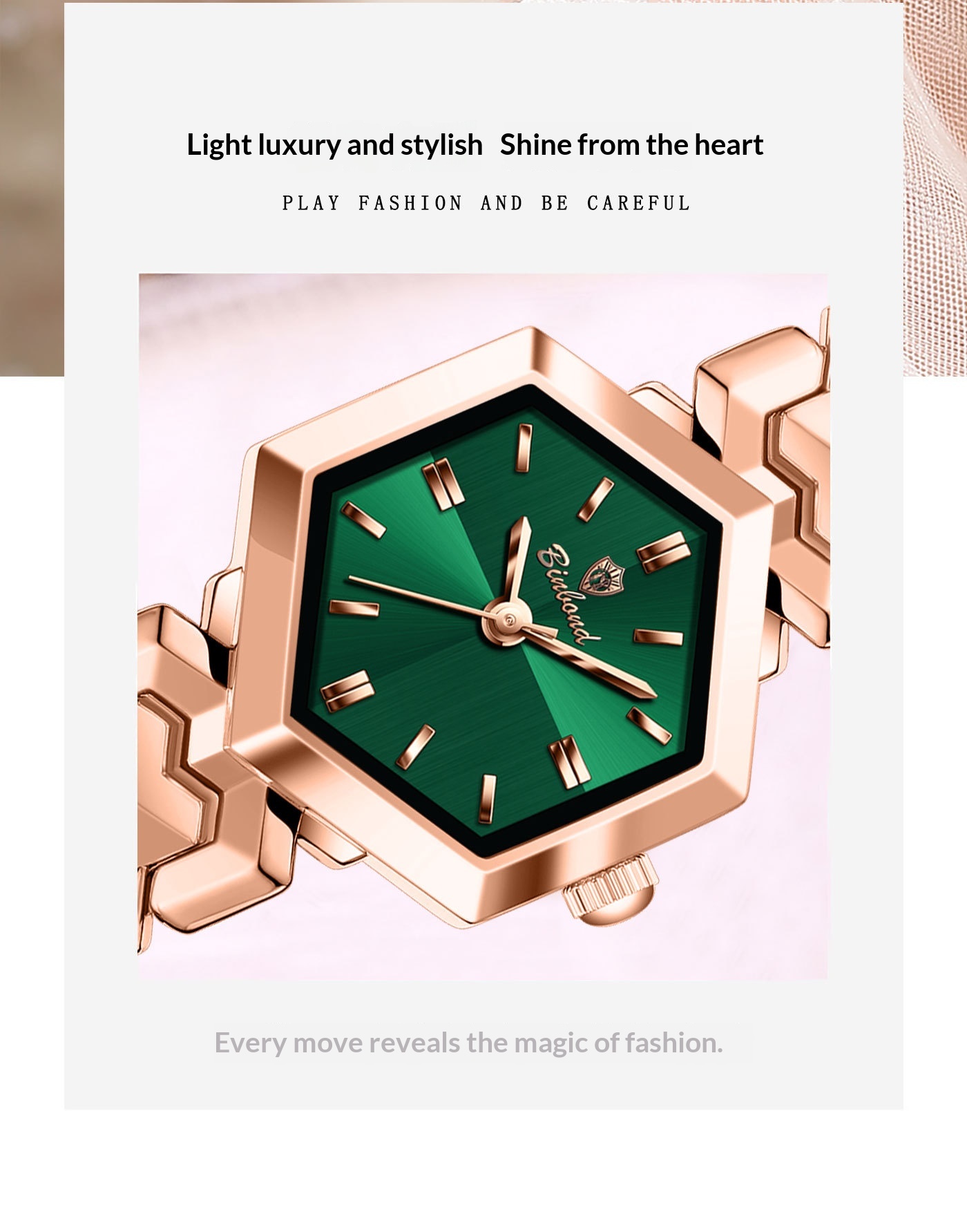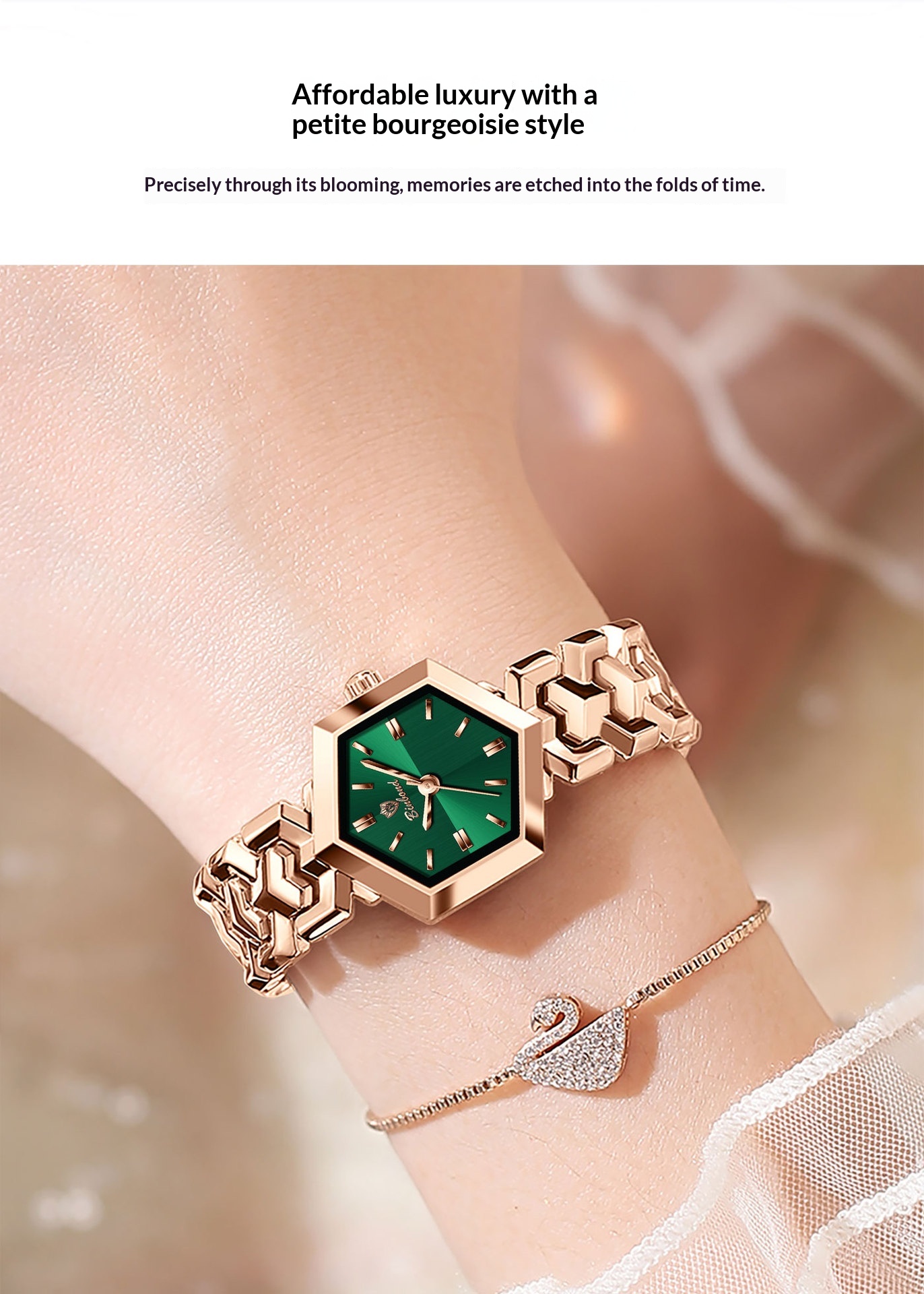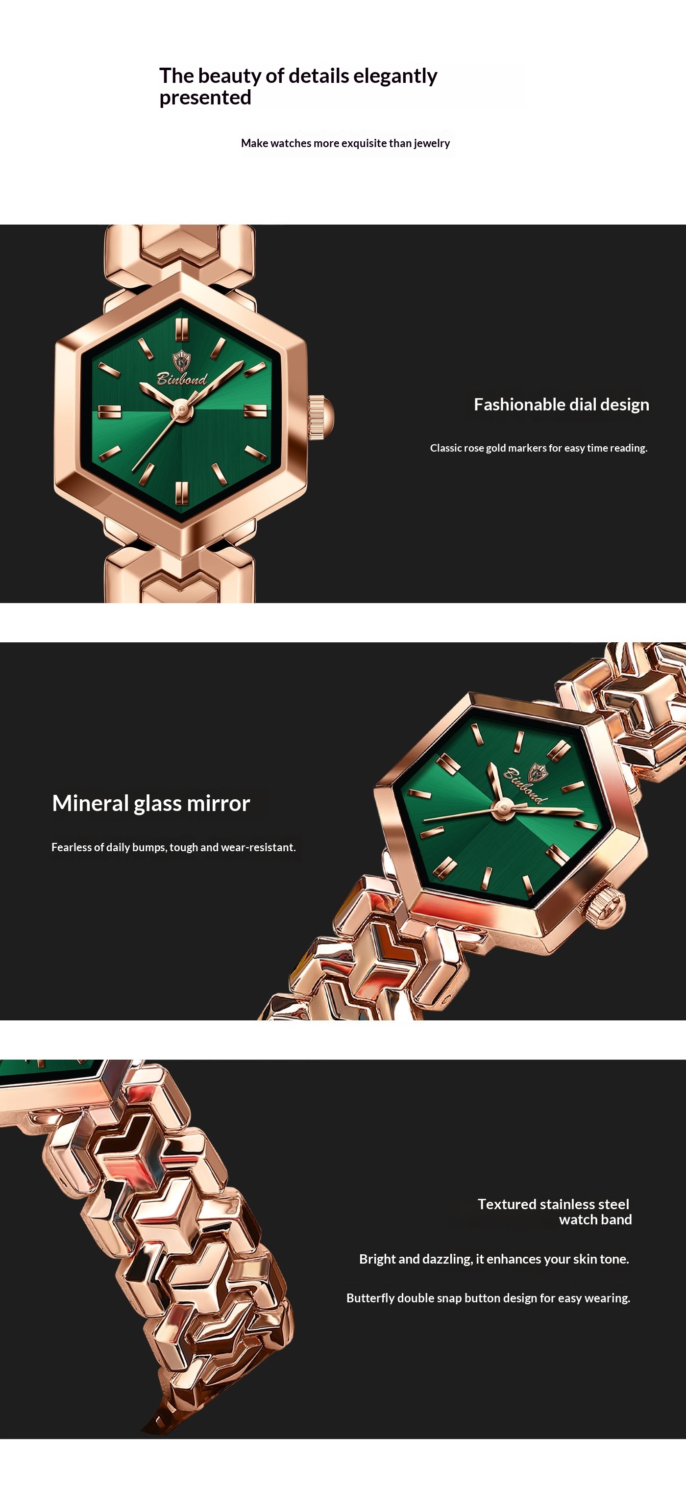 Colors: Rose Gold–Green Dial, Rose Gold–Red Dial, Rose Gold–Black Dial, Rose Gold–White Dial, Stainless Steel–White Dial, Stainless Steel–Pink Dial, Stainless Steel–Light Blue Dial, Two-Tone Gold–White Dial, Two-Tone Gold–Gold Dial