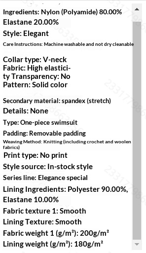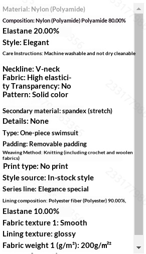 • Composition: 80.00% Polyamide (Nylon), 20.00% Elastane (Spandex)