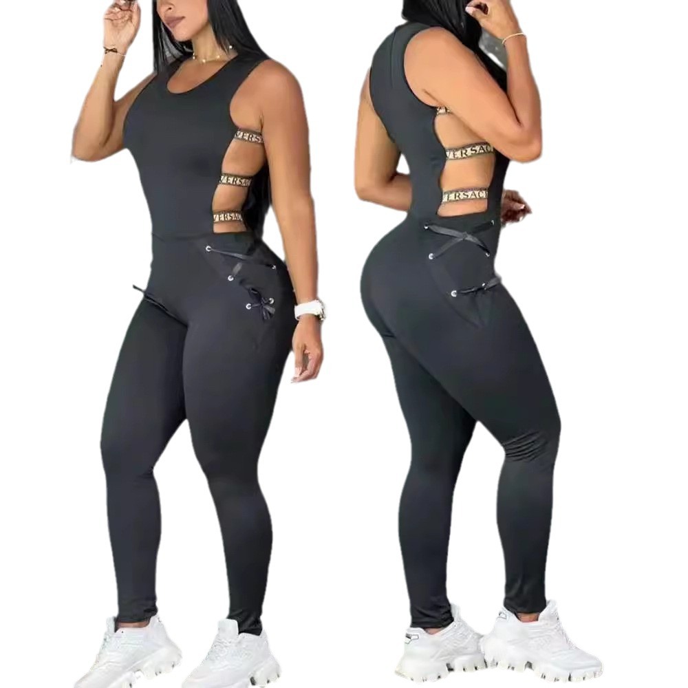 Women's One-piece Hollow Out Slim-fit Lace Up Punk Jumpsuit