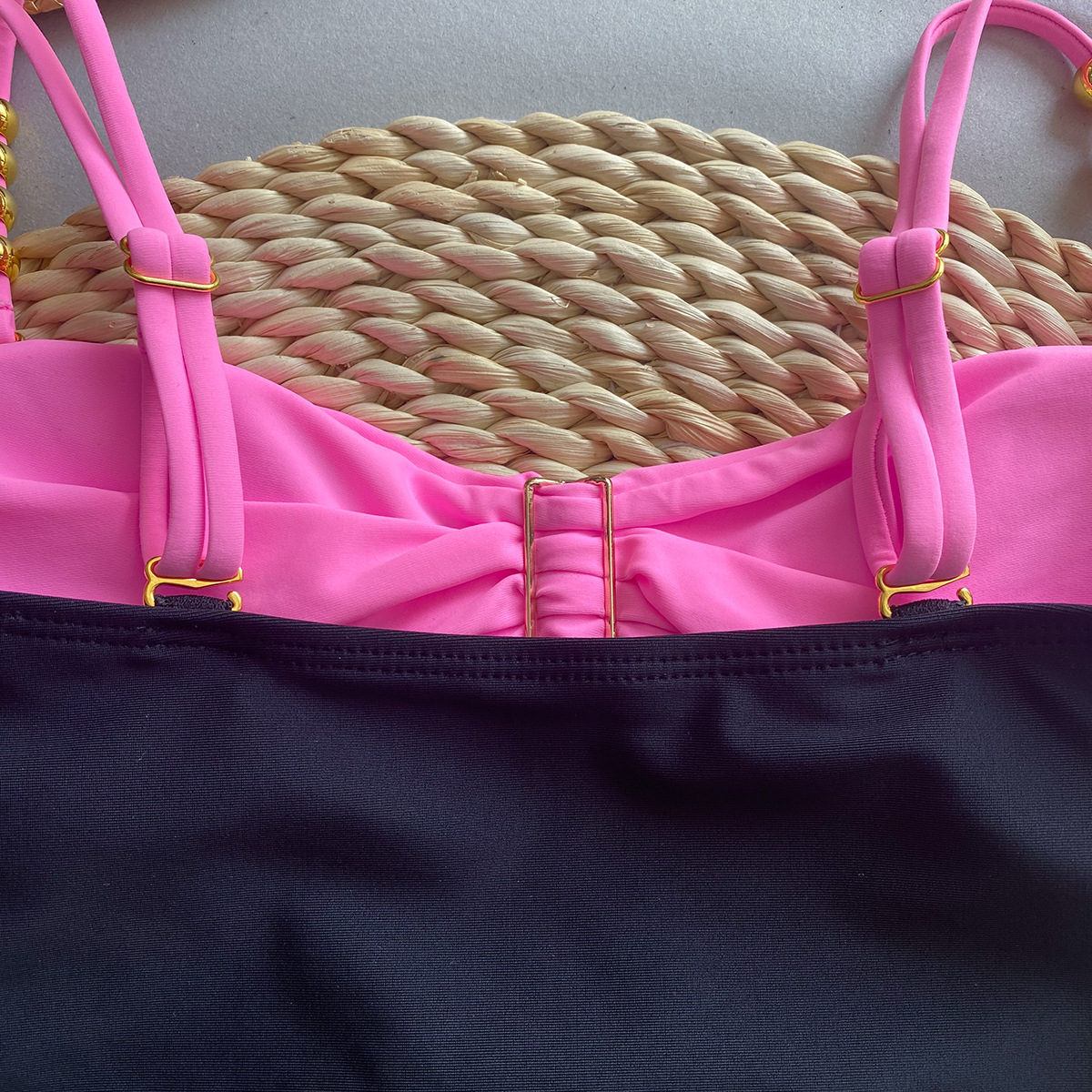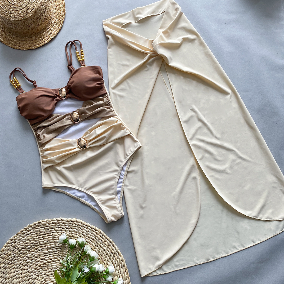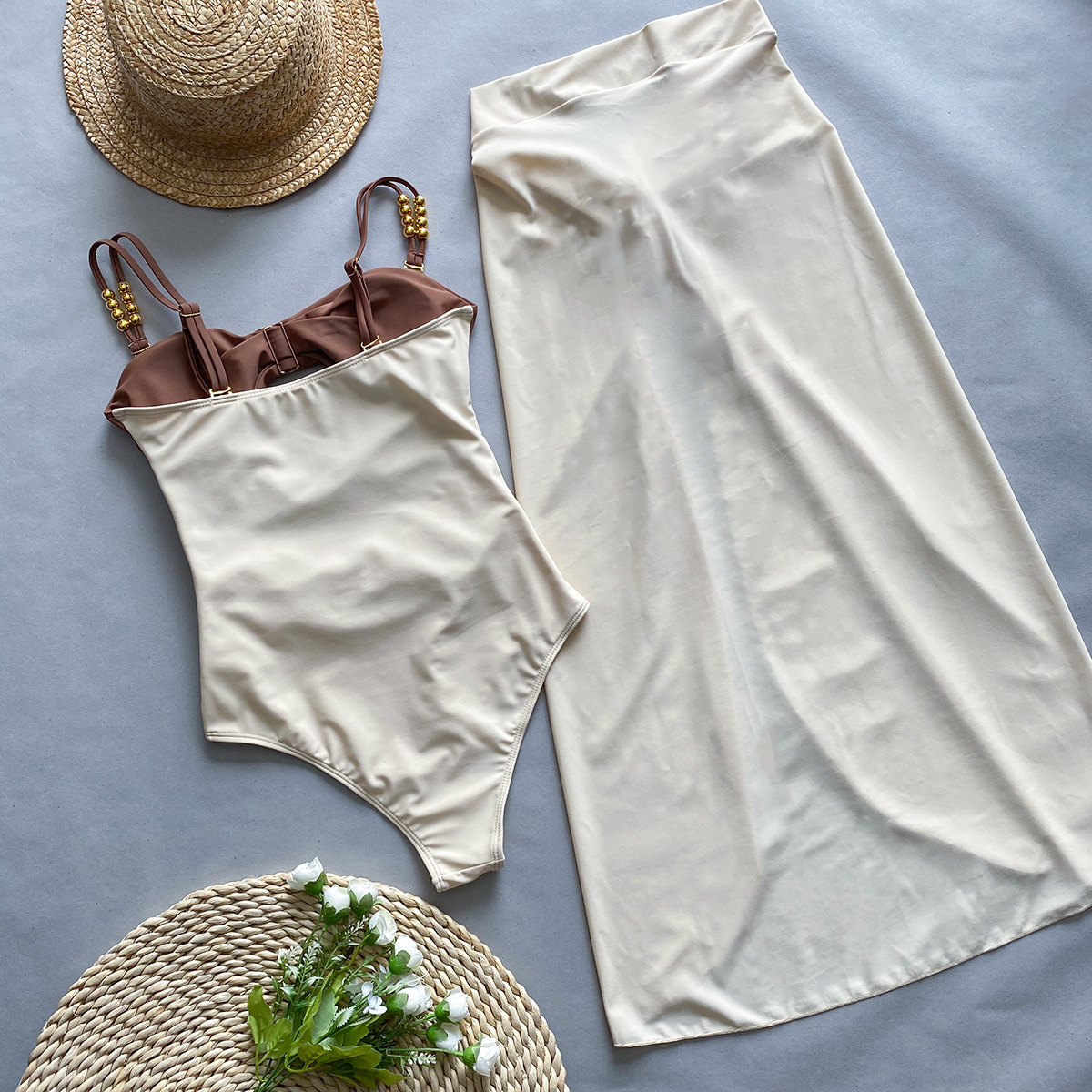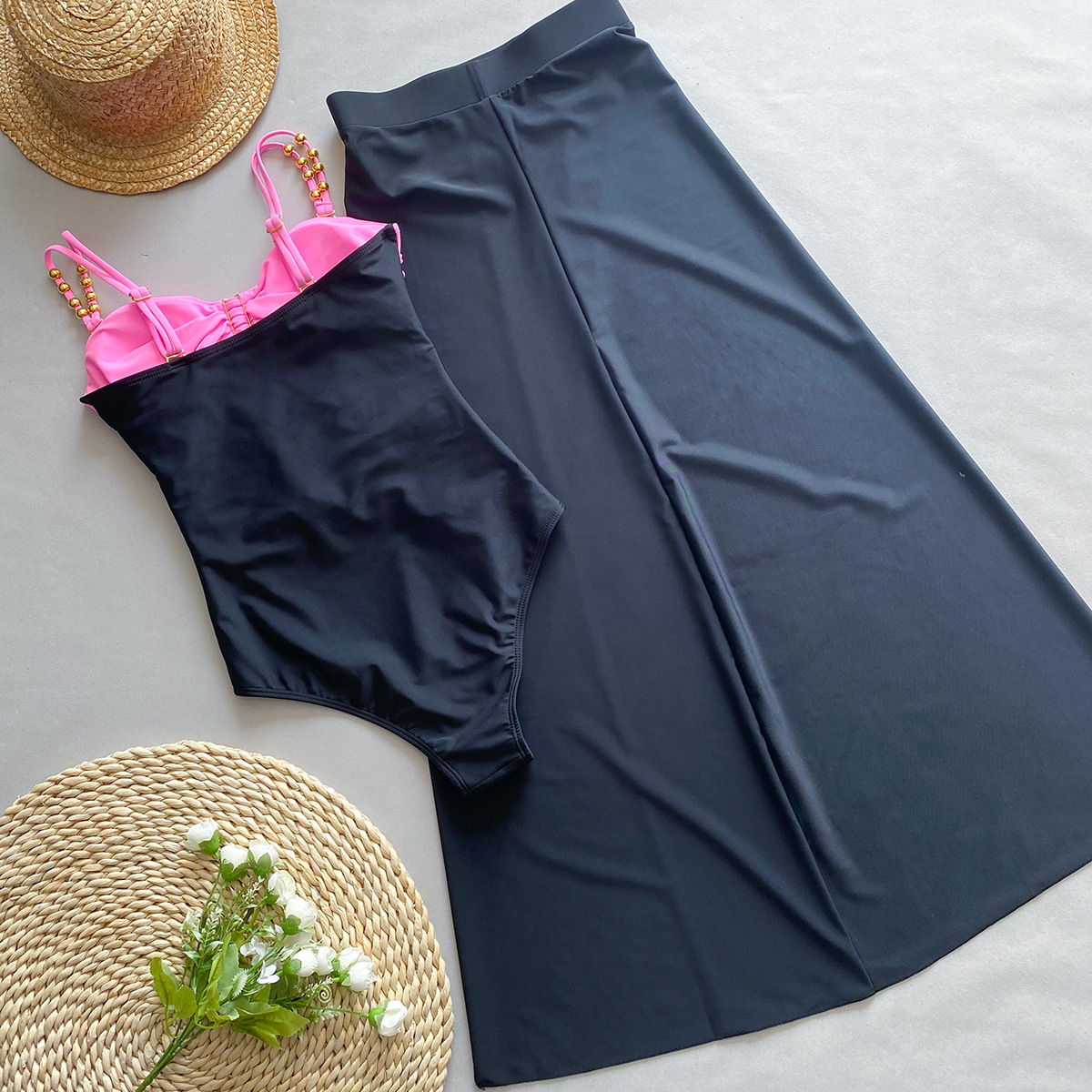 Color: C3501B brown swimsuit, C3501B pink swimsuit, C3502B black swimsuit, C3502 black swimsuit, C3503B green swimsuit, C3501D beige skirt, c3501D pink skirt, c3502D black skirt, C3503D green skirt