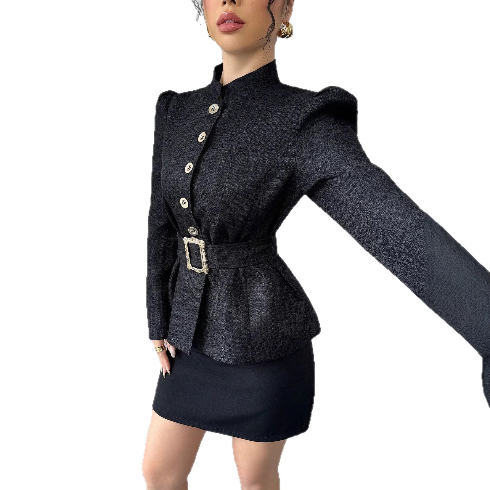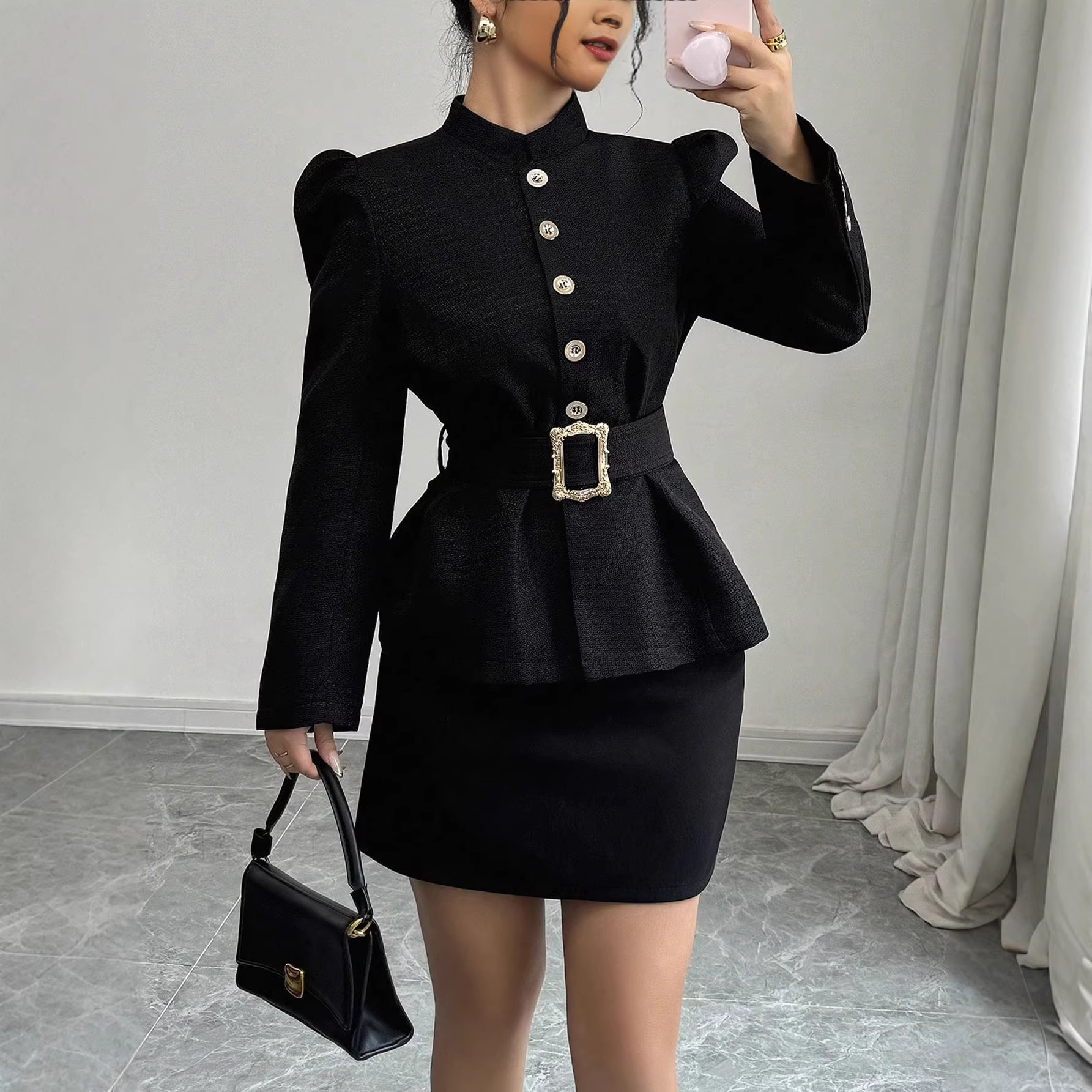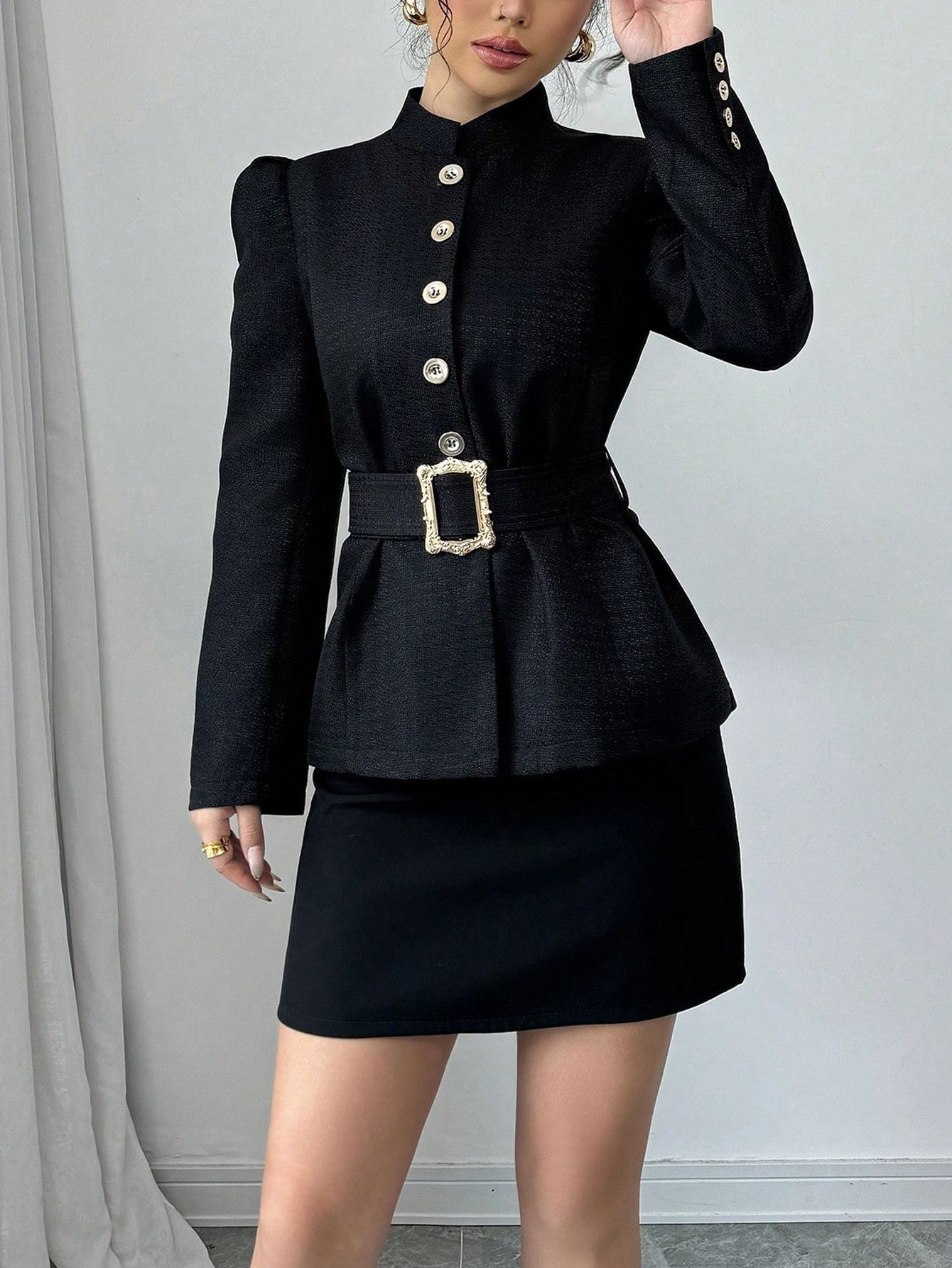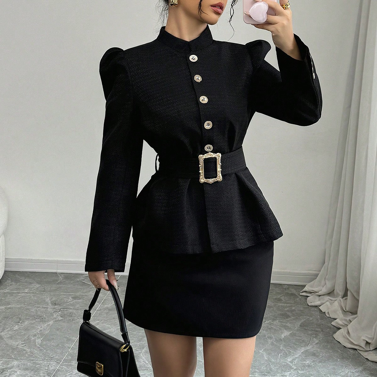 Trendy Elements: Belt, Pleats, Metal Accents, Buttons, Puff Sleeves