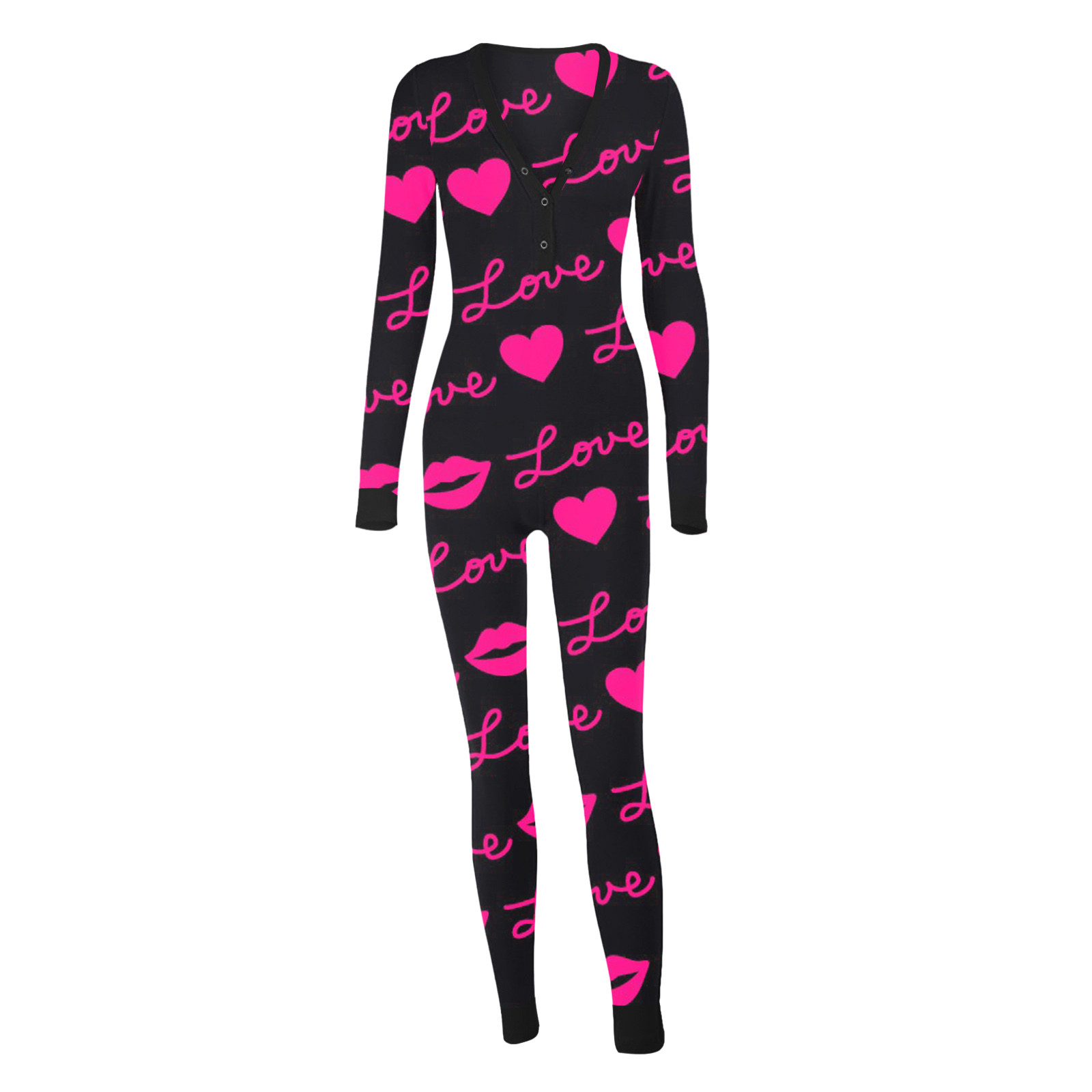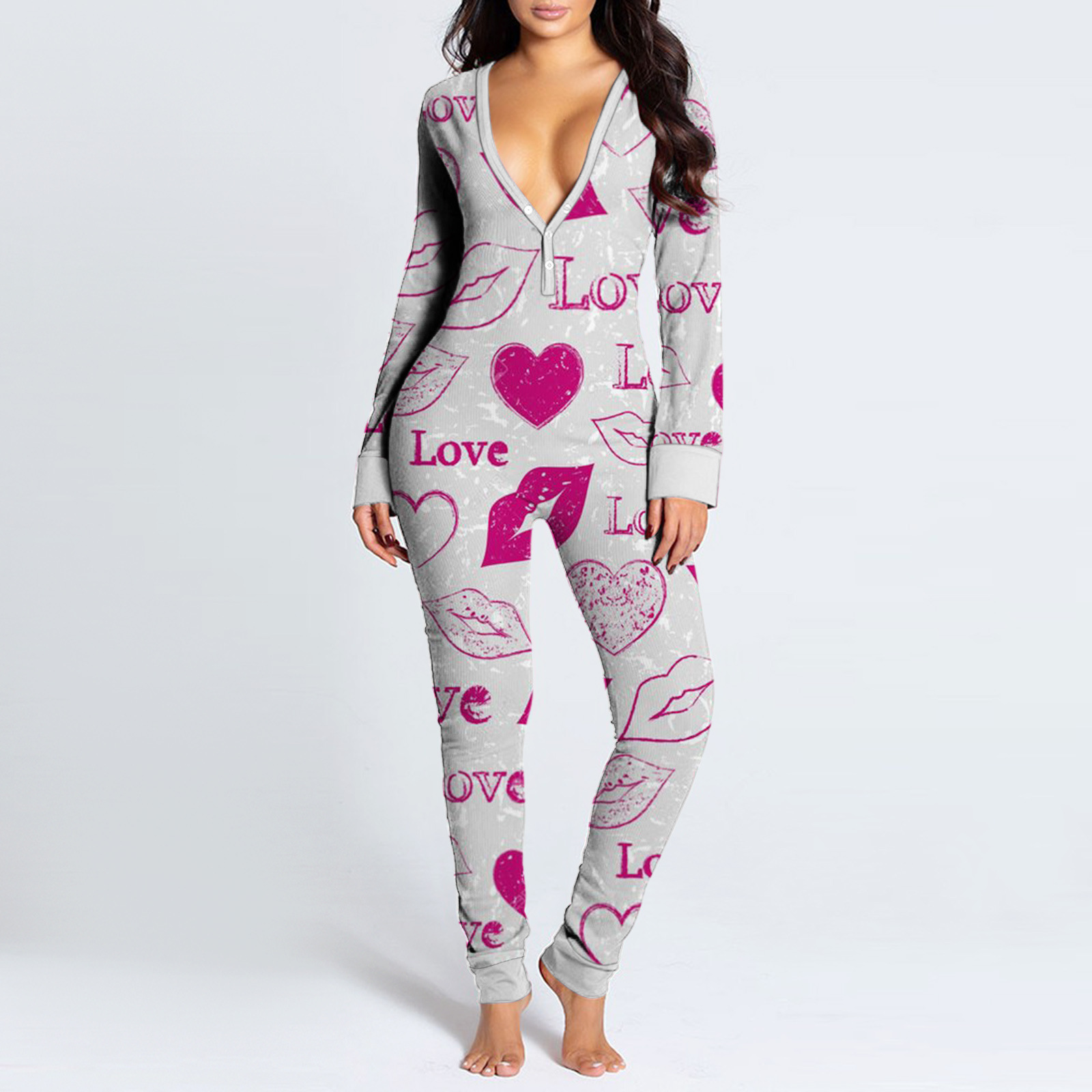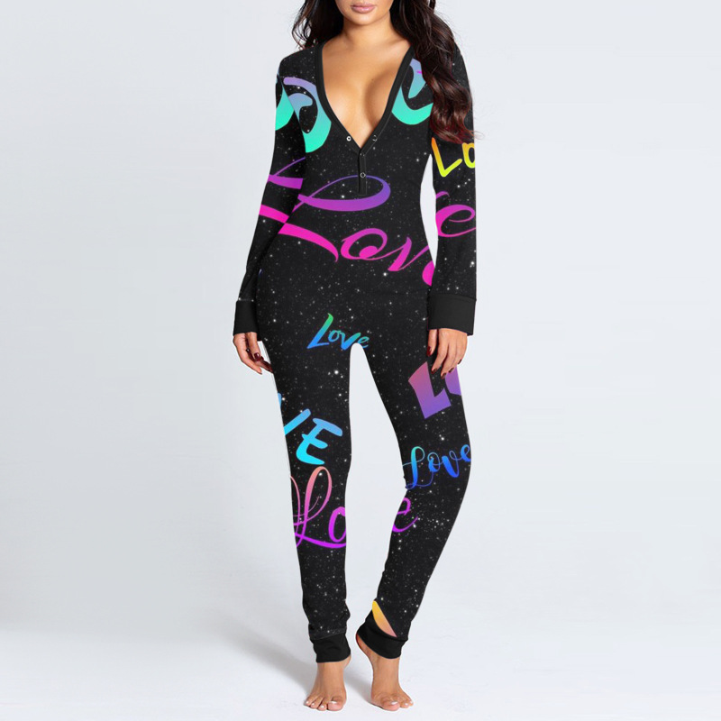 Women's Pajama Jumpsuit Print Deep V