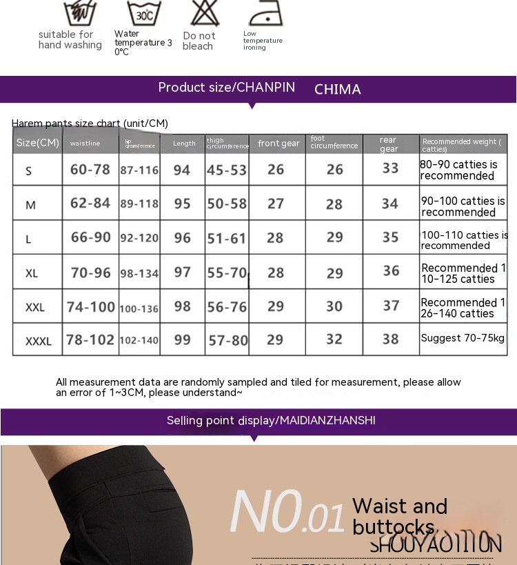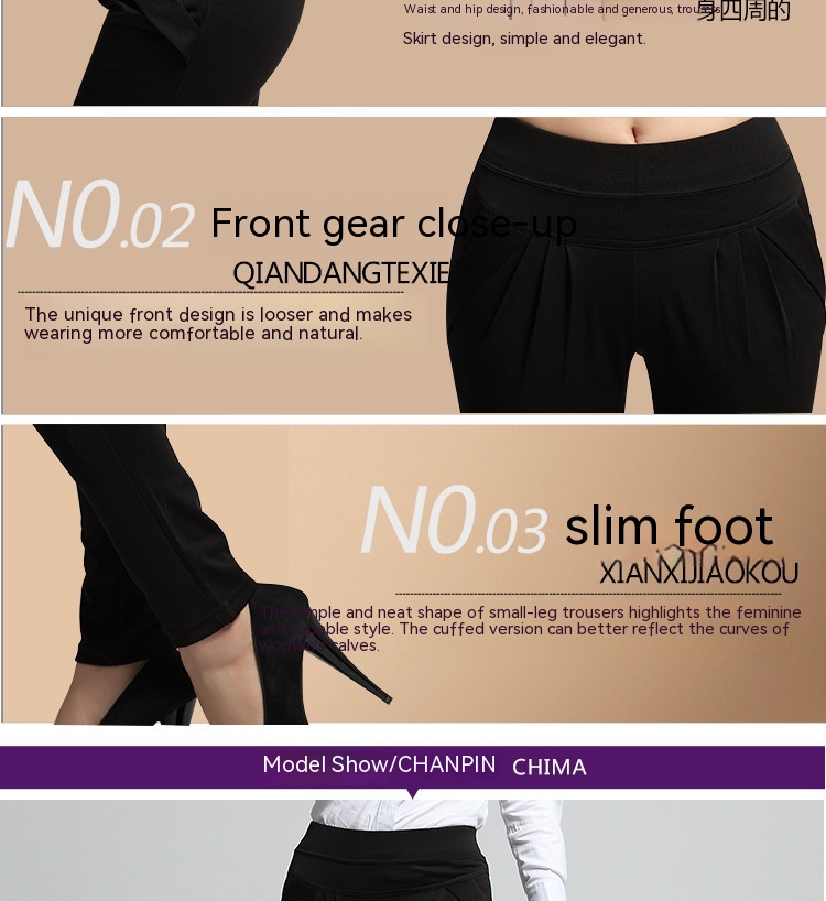 Color: [khaki] harem trousers, [black] harem trousers, [black] harem cropped pants, [khaki] harem cropped pants
