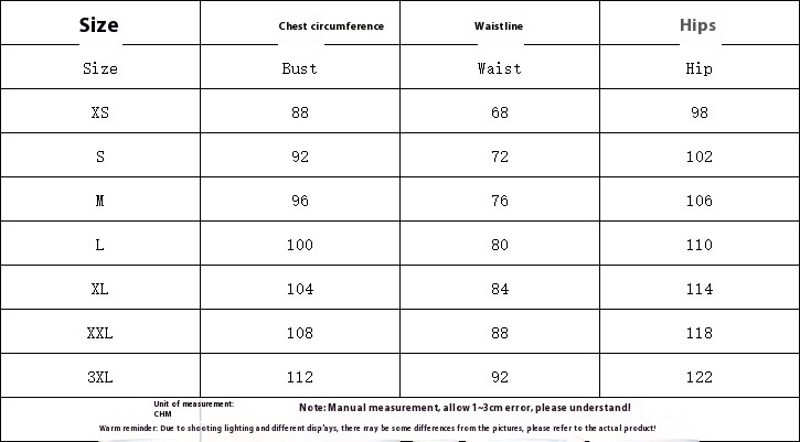 Note: 1. Asian sizes are 1 to 2 sizes smaller than European and American people. Choose the larger size if your size between two sizes. Please allow 2-3cm differences due to manual measurement. 2. Please check the size chart carefully before you buy the item, if you don't know how to choose size, please contact our customer service. 3.As you know, the different computers display colors differently, the color of the actual item may vary slightly from the following images.