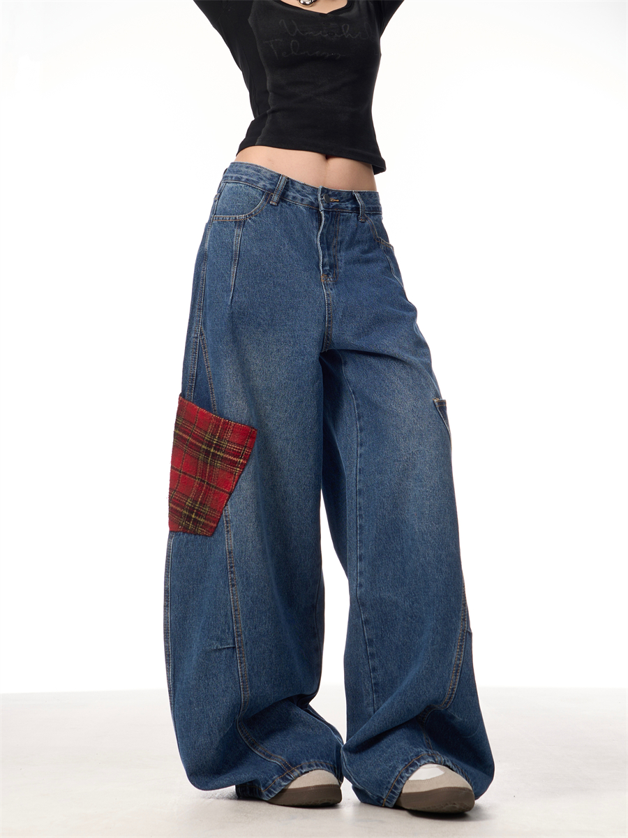 Women's Patchwork Jeans Loose Wide Leg