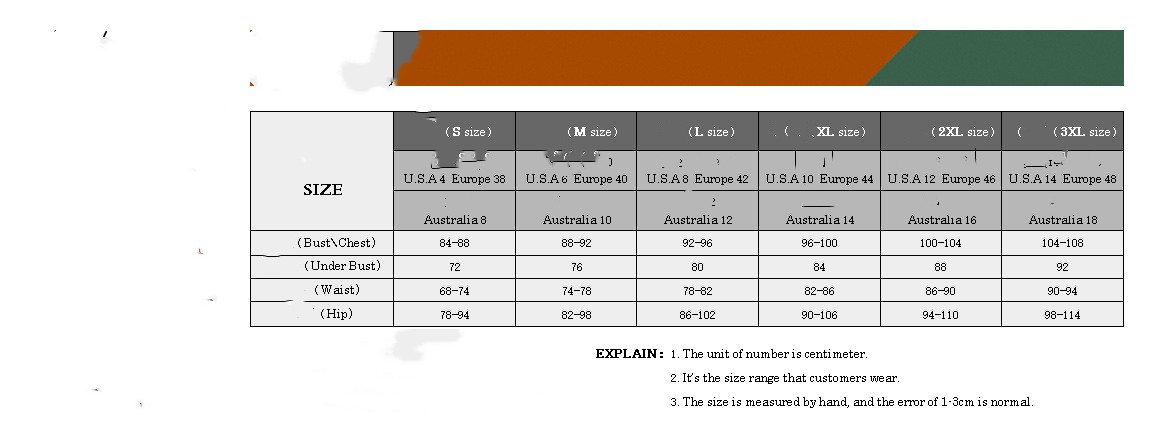 Note: 1. Asian sizes are 1 to 2 sizes smaller than European and American people. Choose the larger size if your size between two sizes. Please allow 2-3cm differences due to manual measurement. 2. Please check the size chart carefully before you buy the item, if you don't know how to choose size, please contact our customer service. 3.As you know, the different computers display colors differently, the color of the actual item may vary slightly from the following images.
