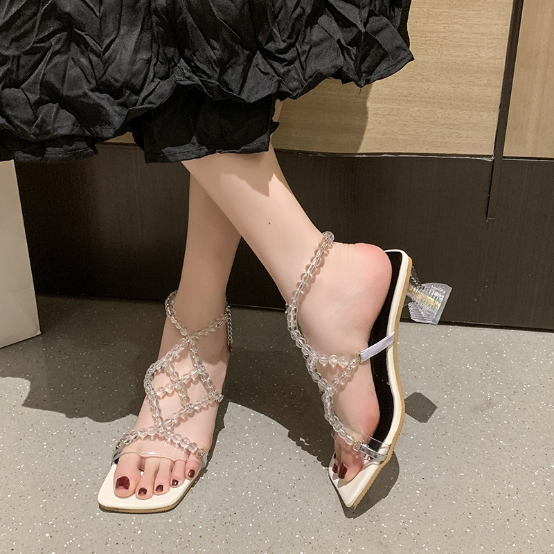 Women's Pearl Square Toe Rhinestone One Buckle Heels