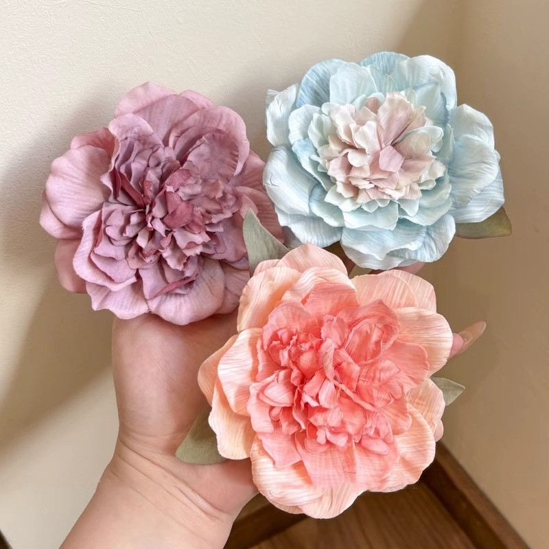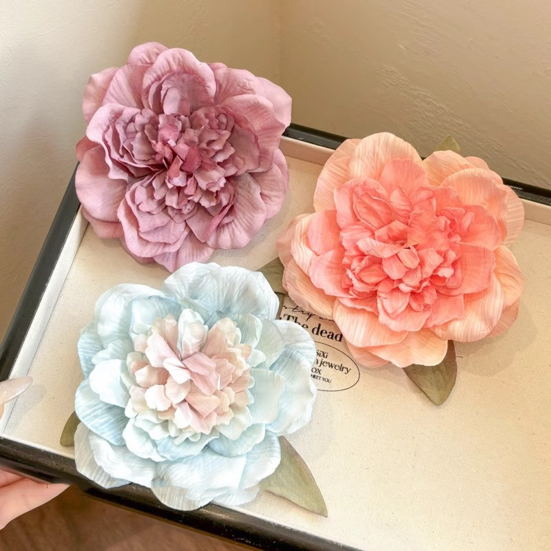 Color: 1# purple peony flower barrettes, 2# pink peony flower barrettes, 3# blue peony flower barrettes