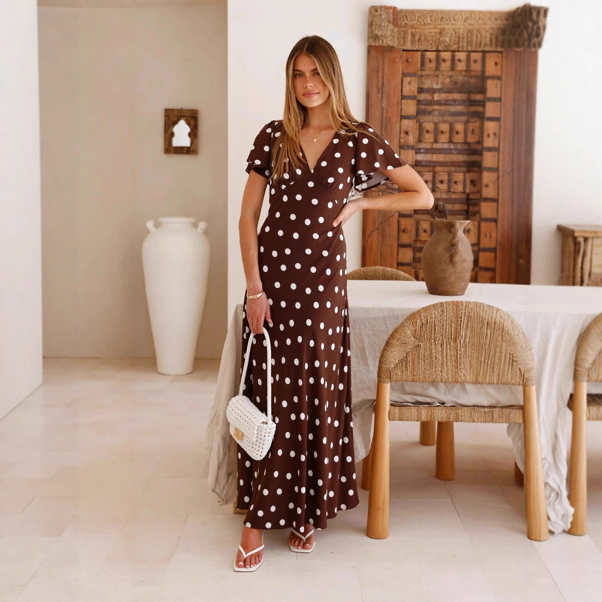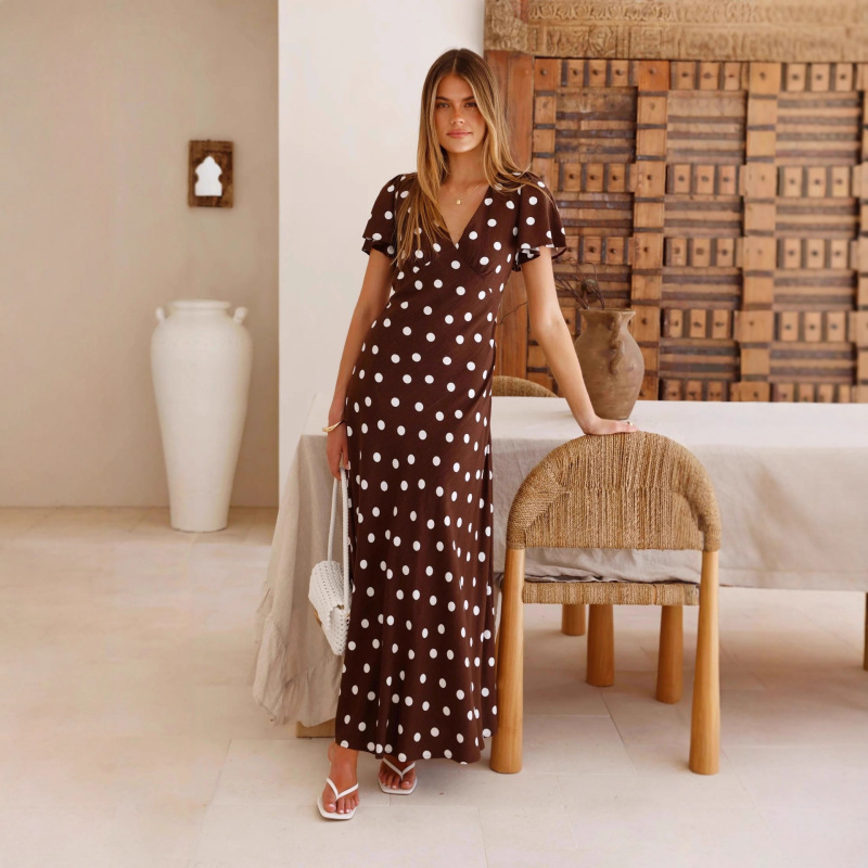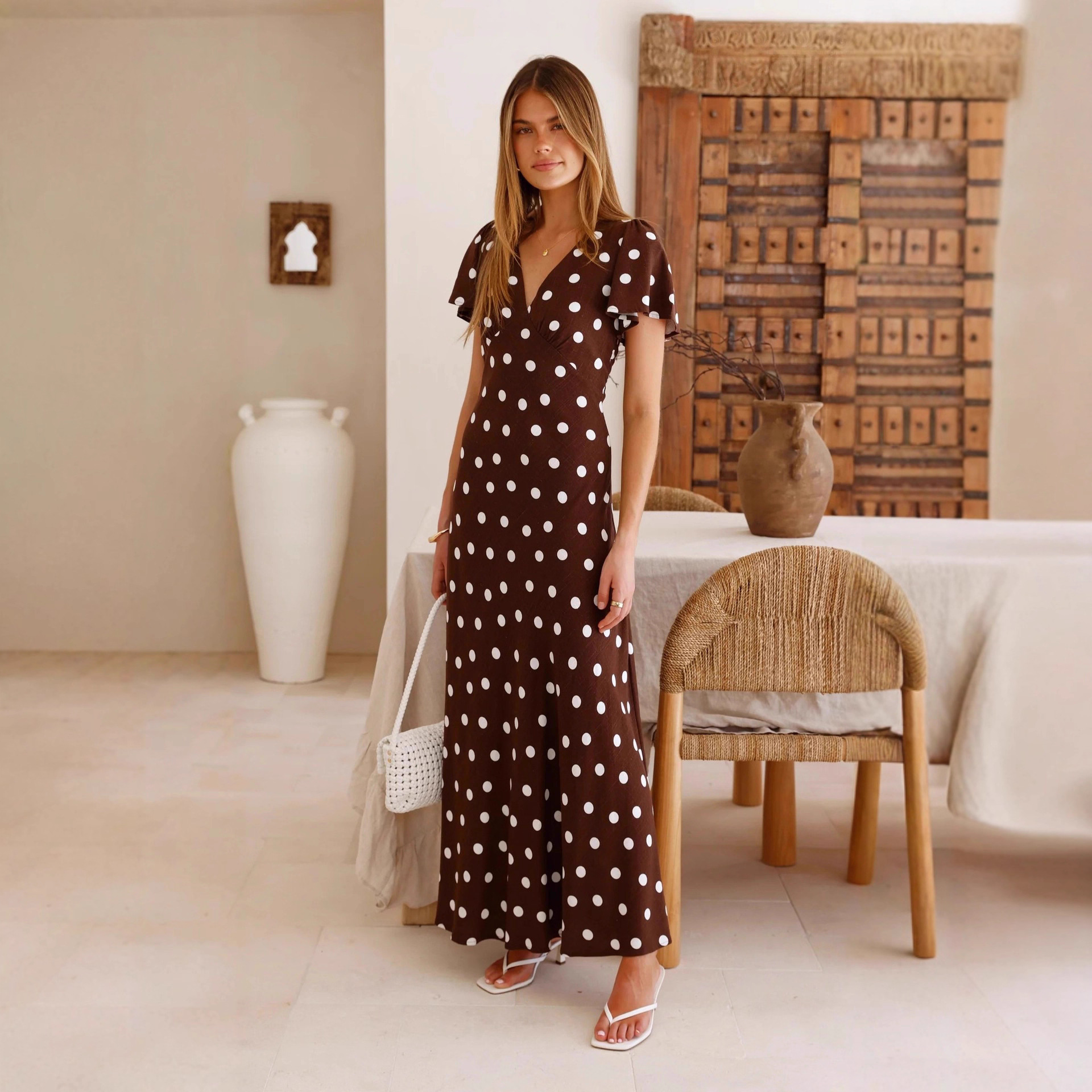 Womens Peplum Dress With Polka-Dot Print And Flared Sleeves