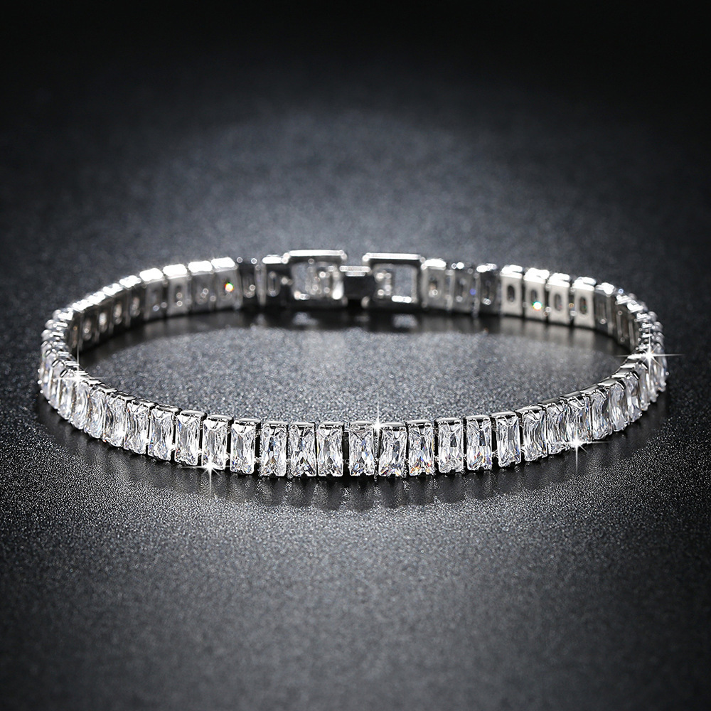 Women's Personality Thick Chain Rectangle Zircon Silver Elegant Bracelet