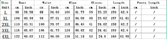Size: L, XL, XXL, XXXL, XXXXL
