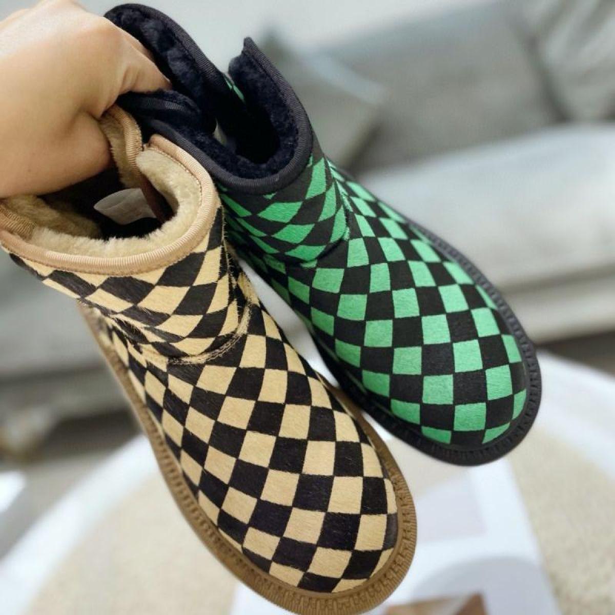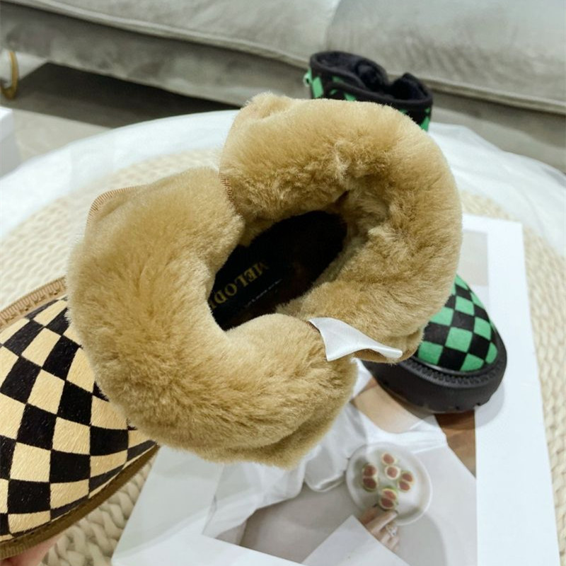 Women's Plaid Horsehair Round Head Simple And Comfortable Thick Flat-bottomed Fur Boots