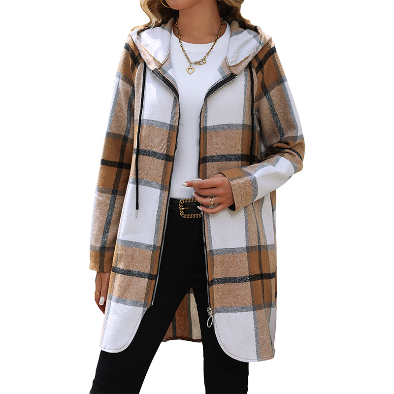 Women's Plaid Loose-fitting Casual Hooded Coat
