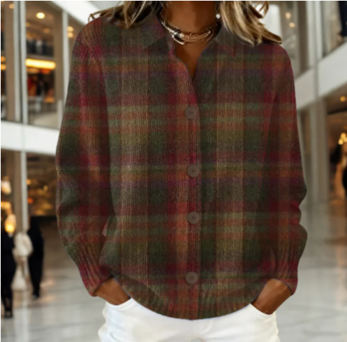 Women's Plaid Printed Long Sleeve Top