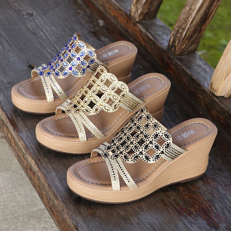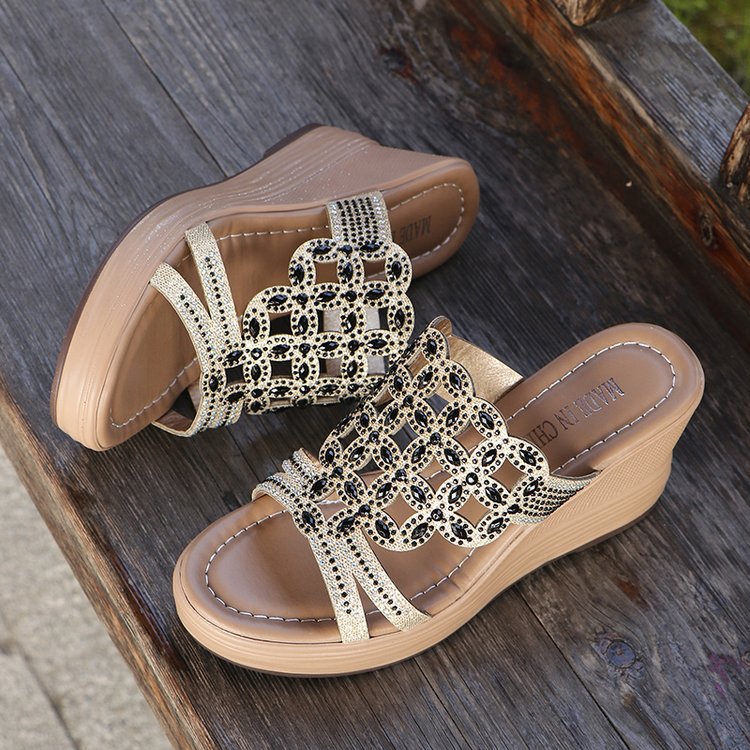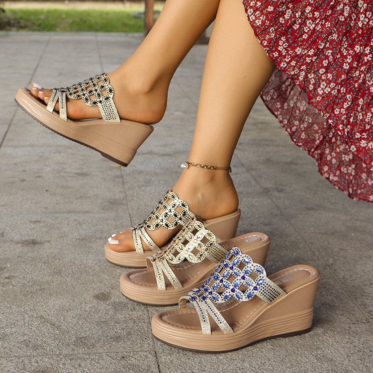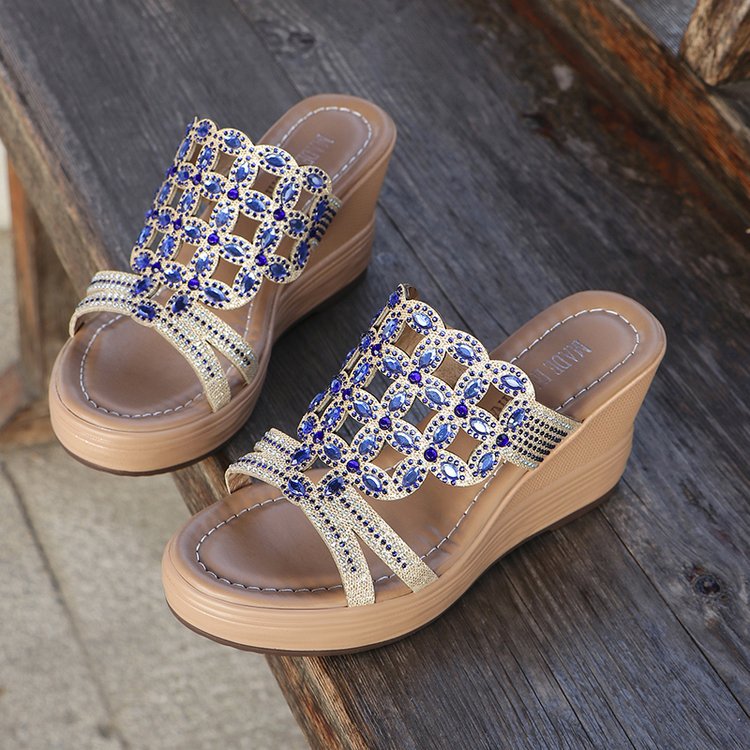 Women's Platform Plus Size Rhinestone High-heeled Wedge Slippers