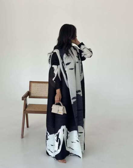 Women's Pleated Robe Printed Shawl Cardigan
