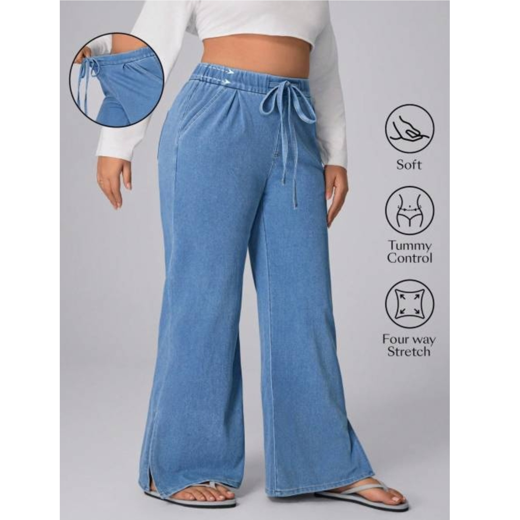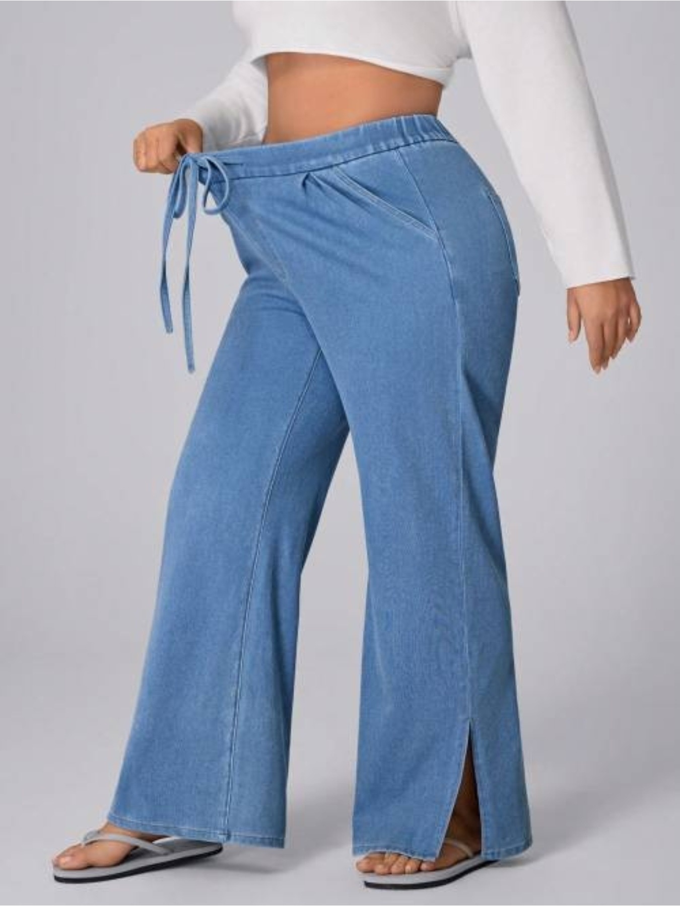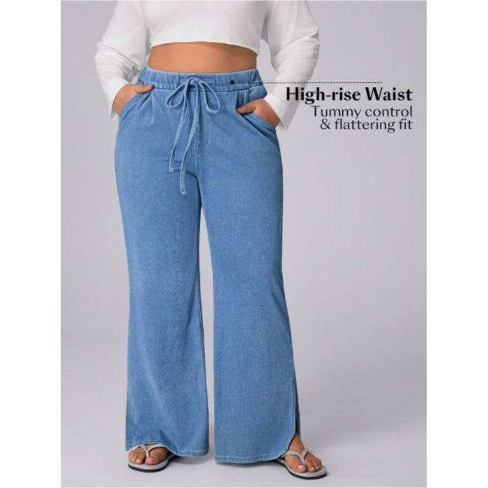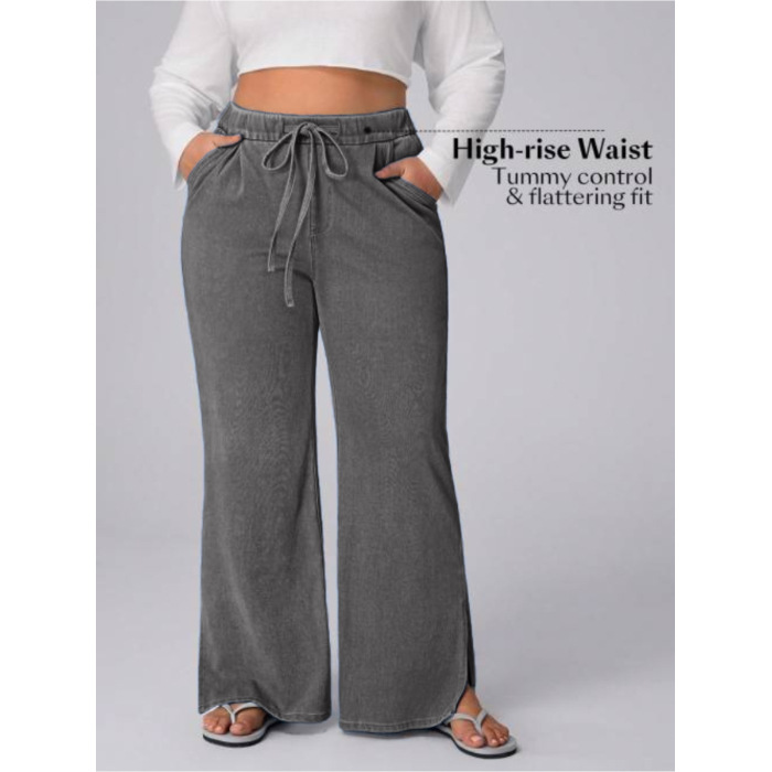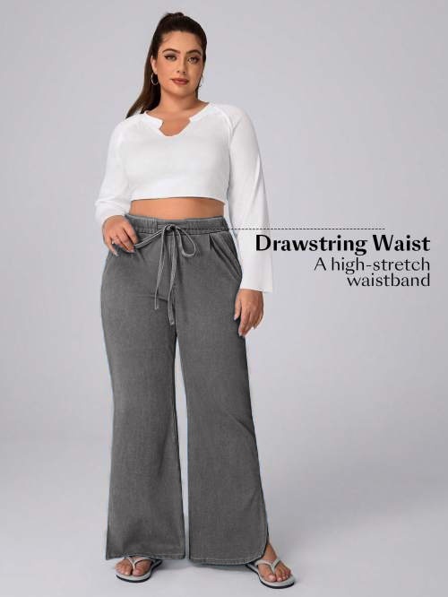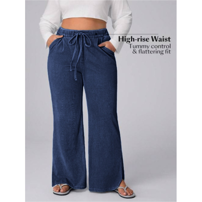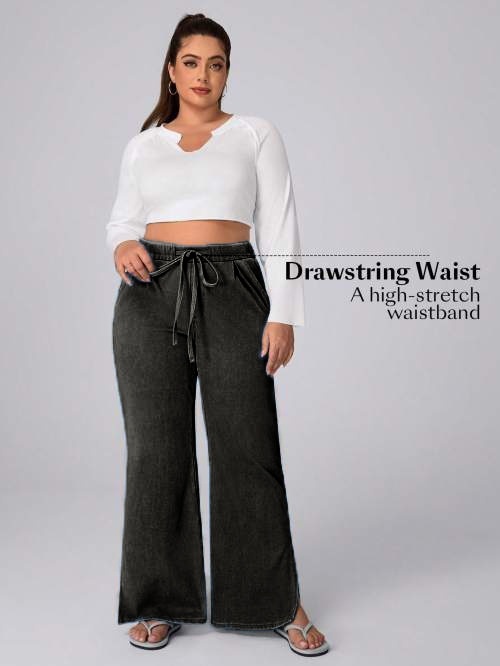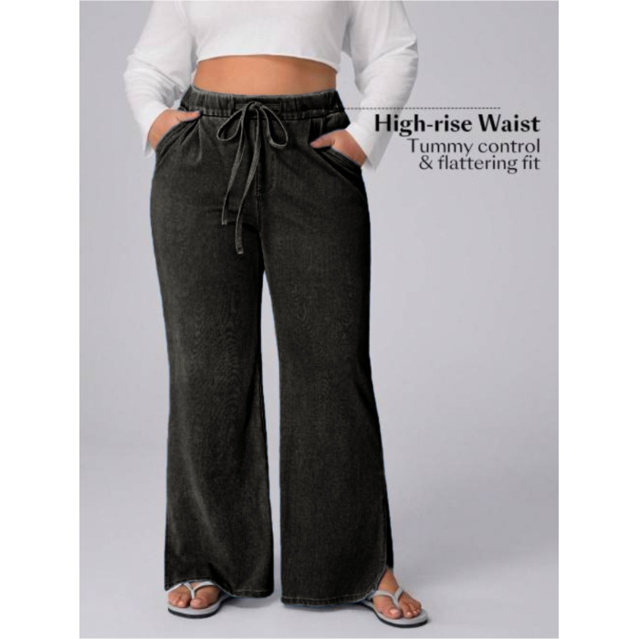 Women's Plus Size Drawstring Casual Loose Wide Leg Jeans