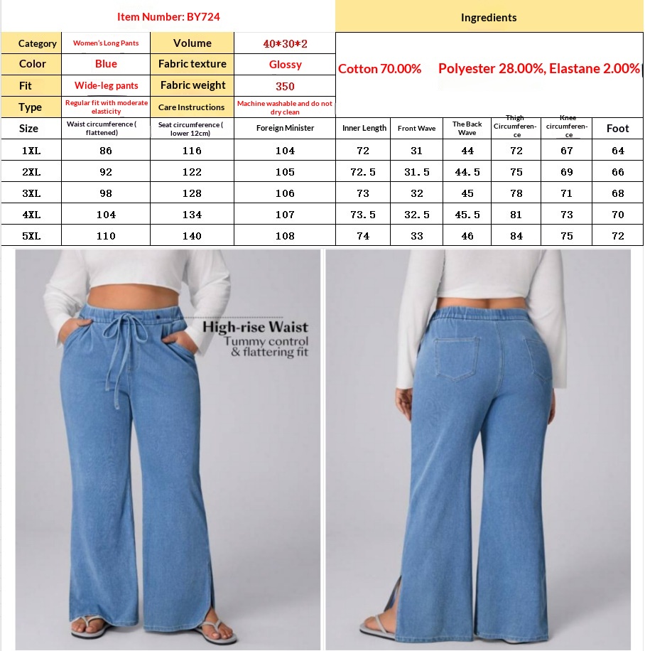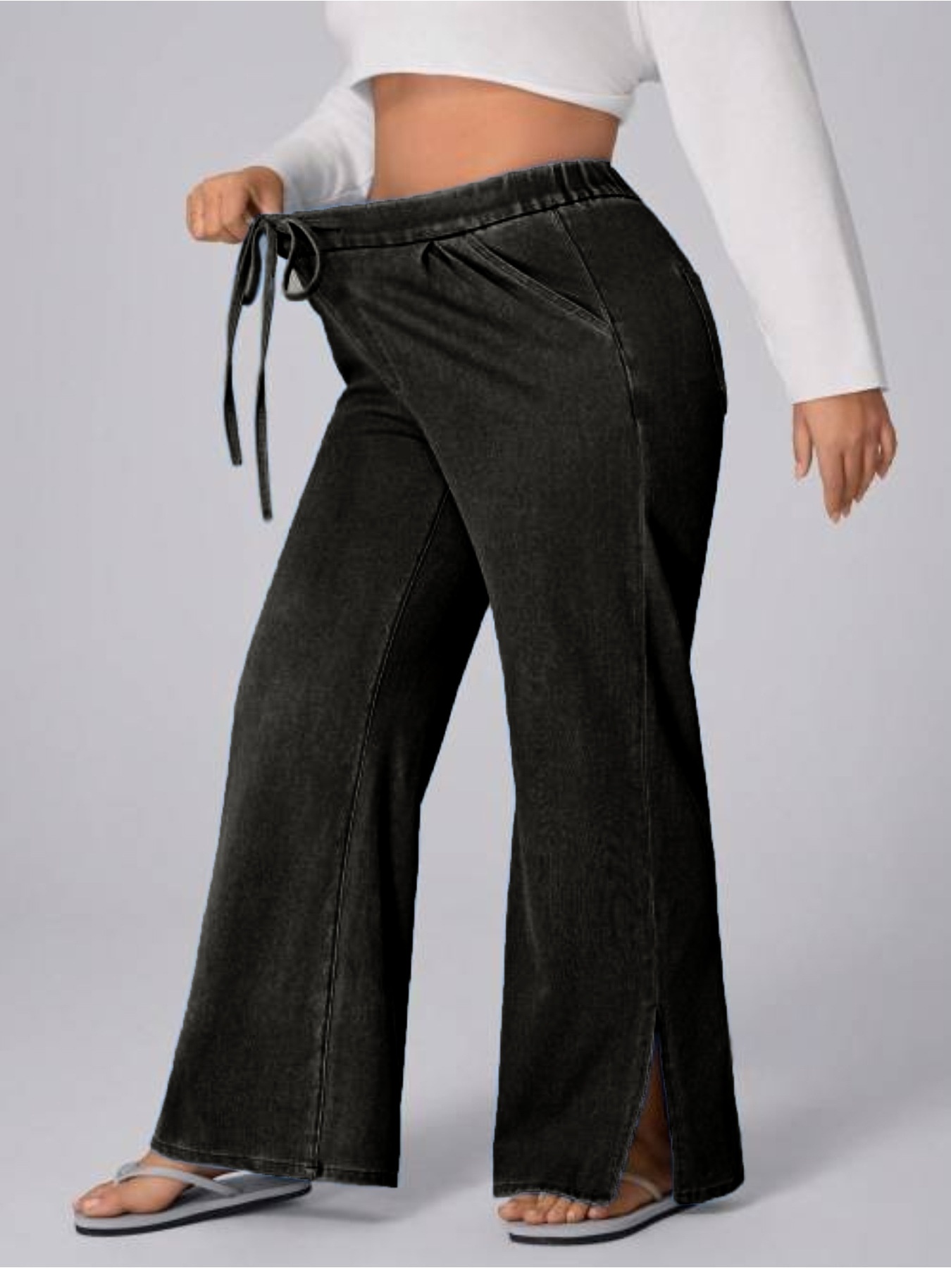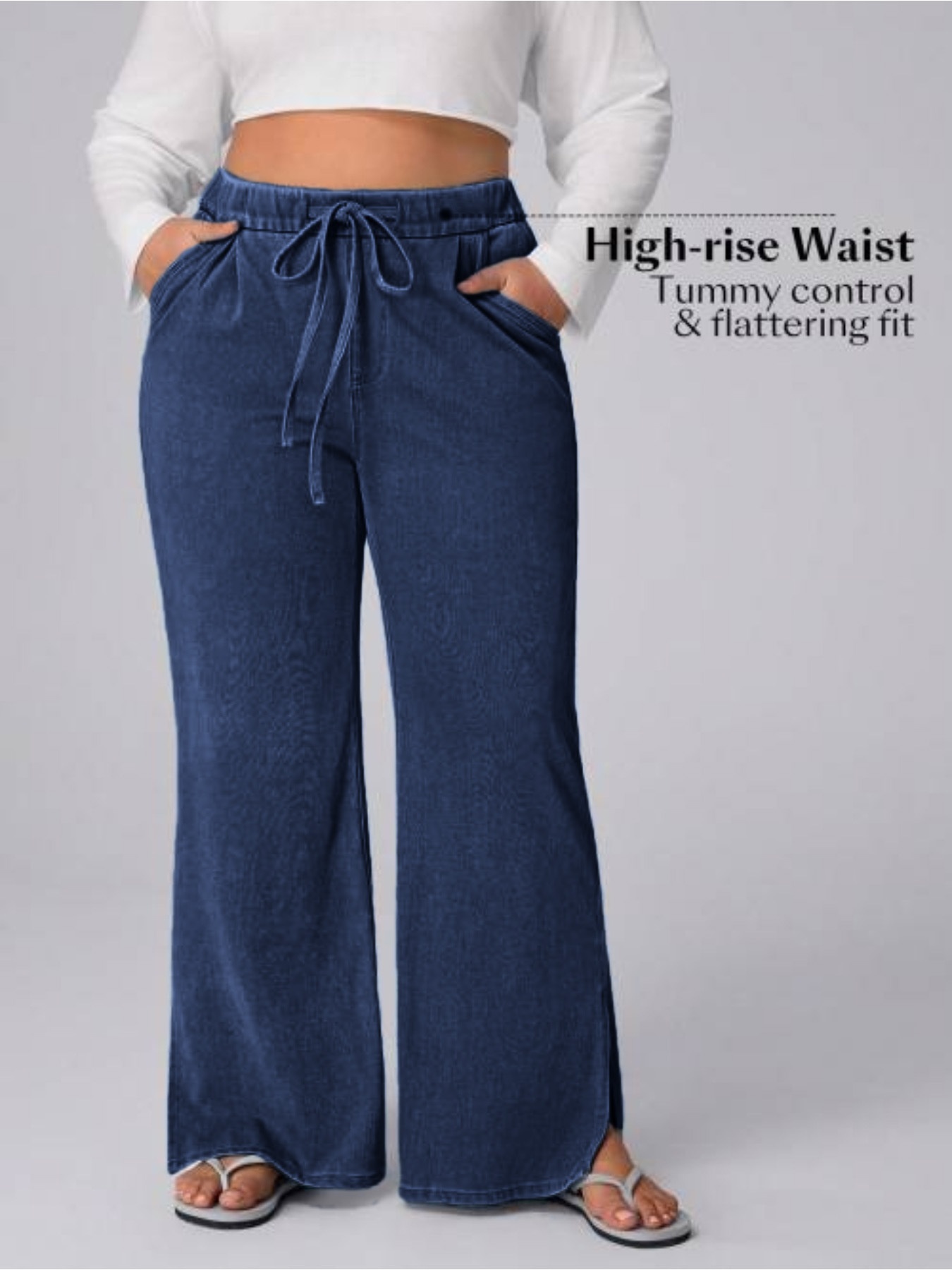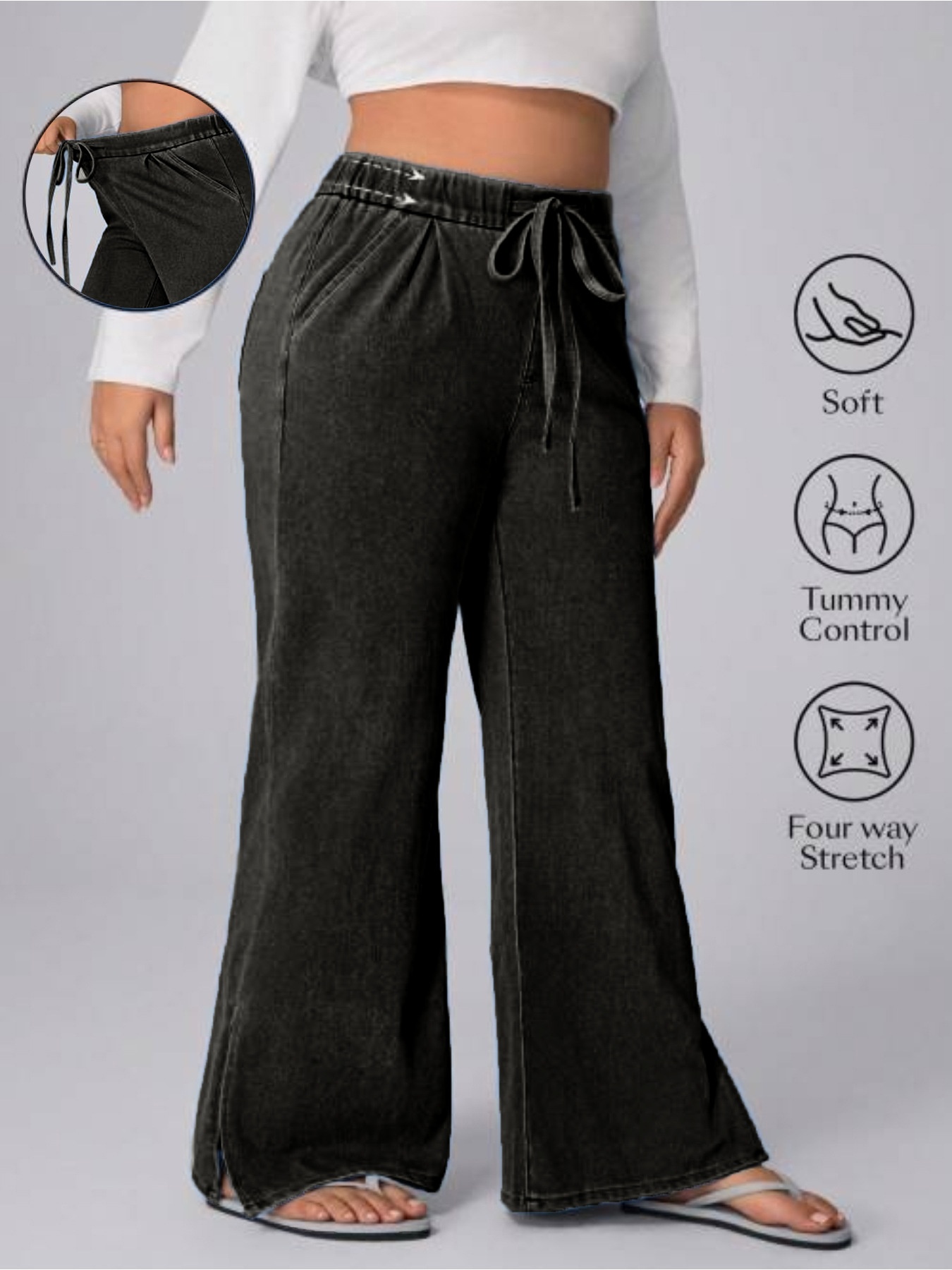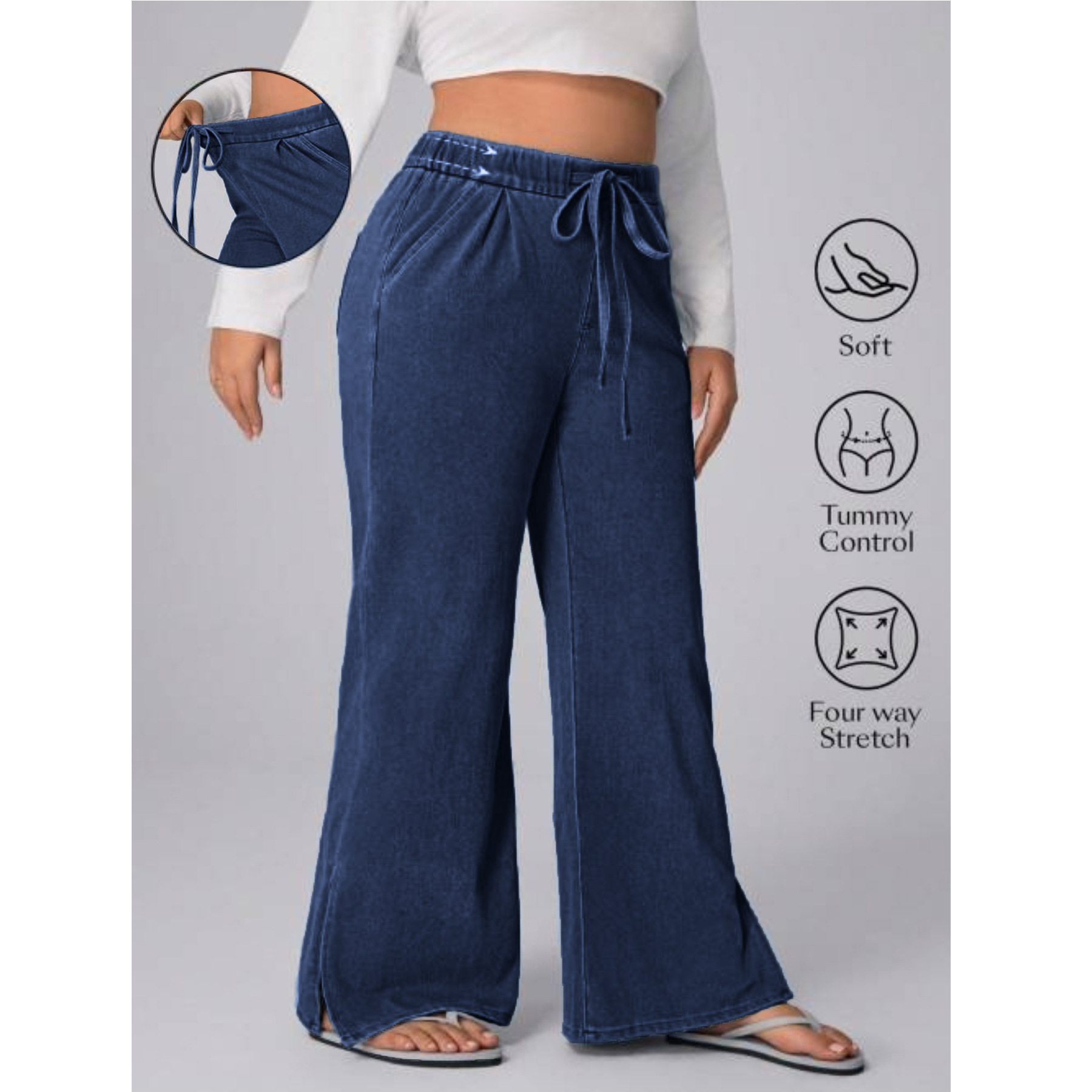 Women's Plus Size Drawstring Casual Loose Wide Leg Jeans