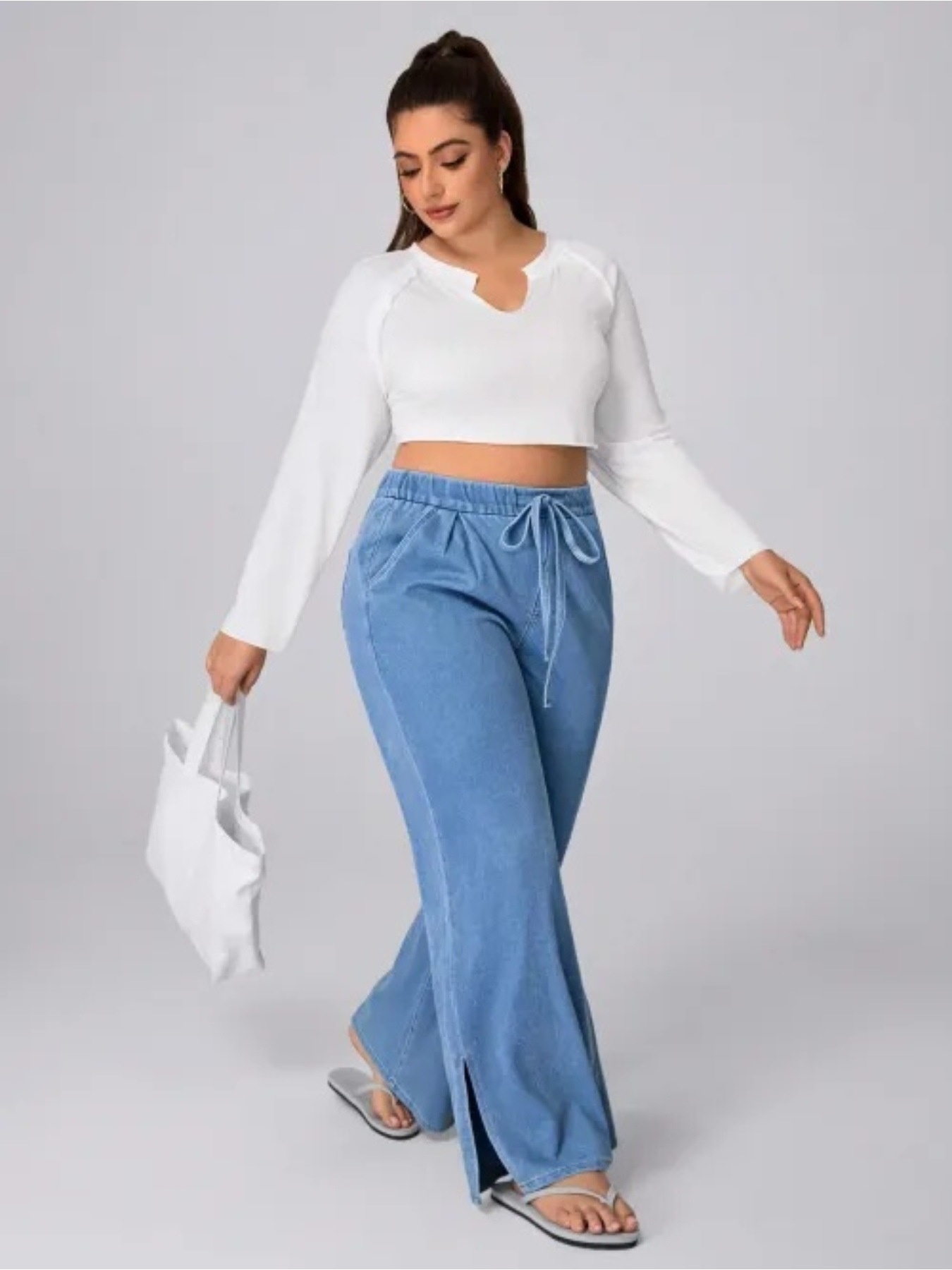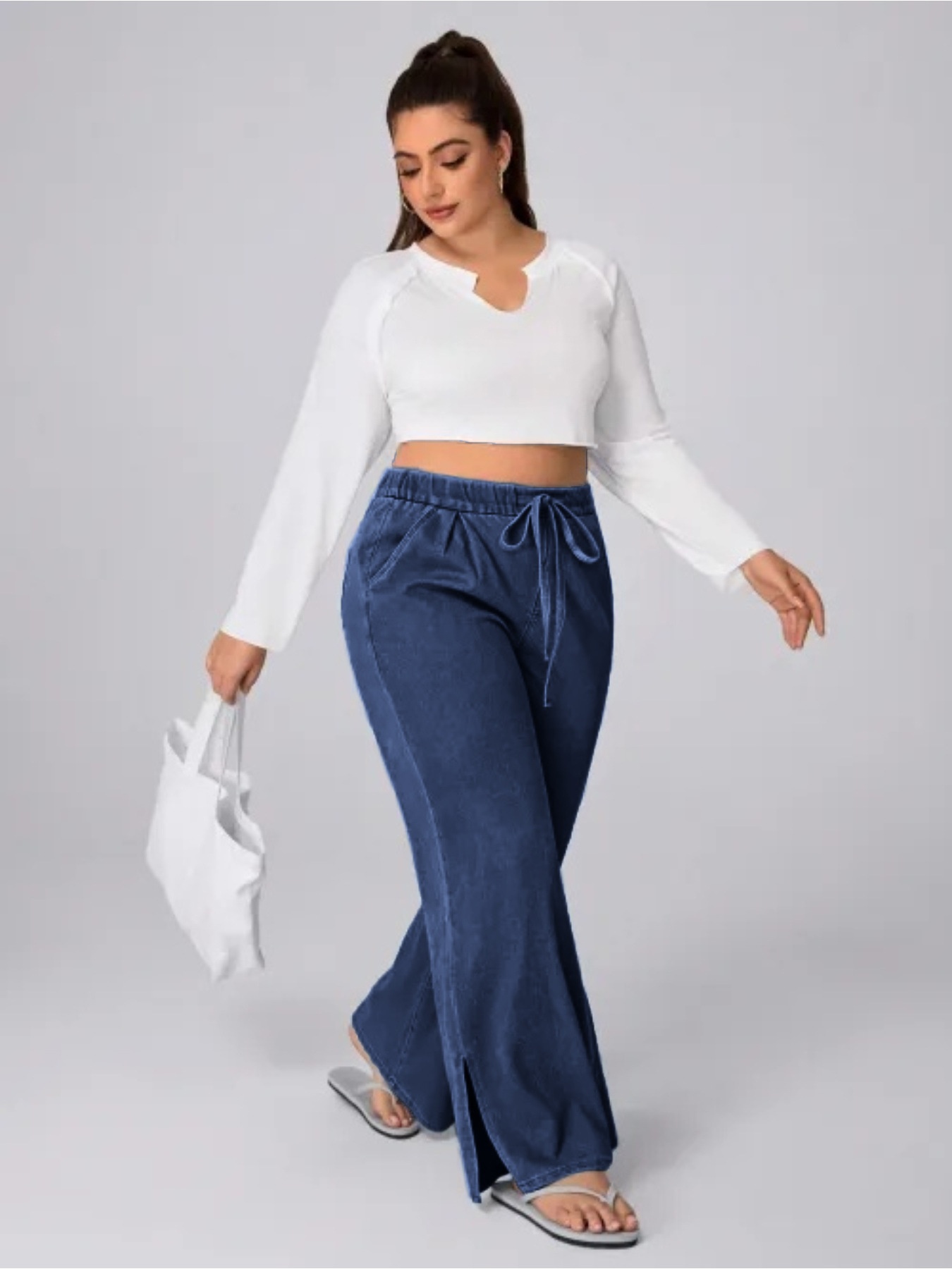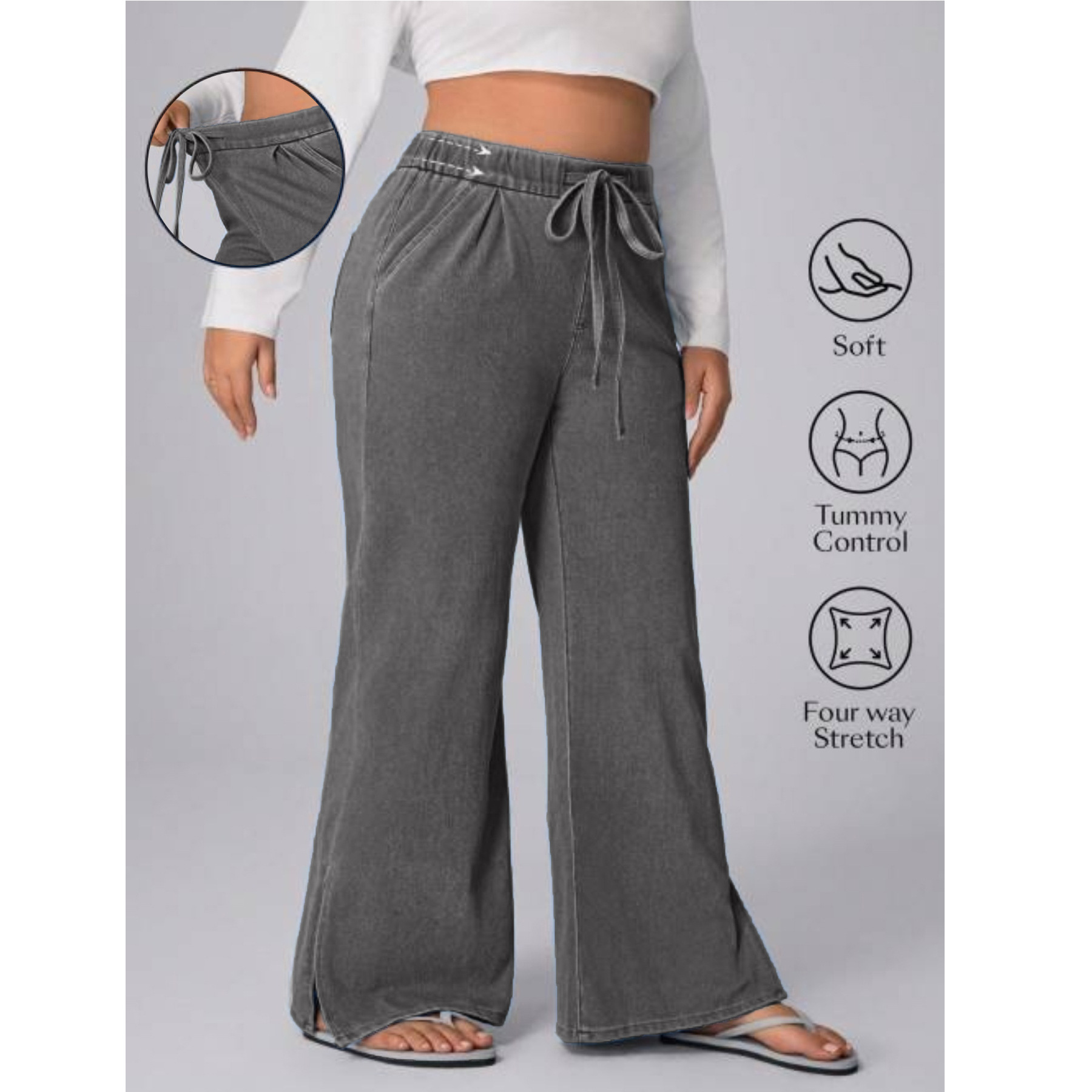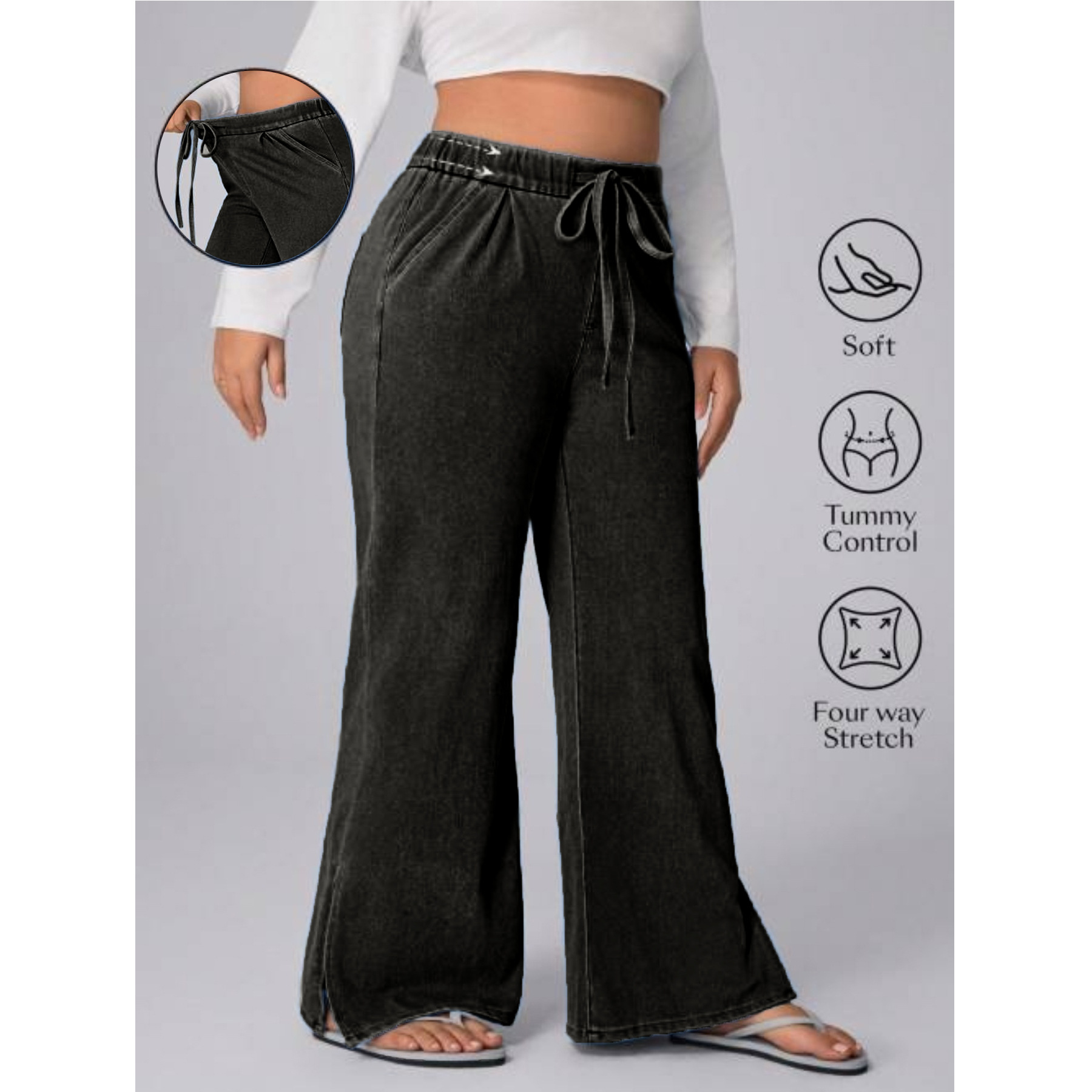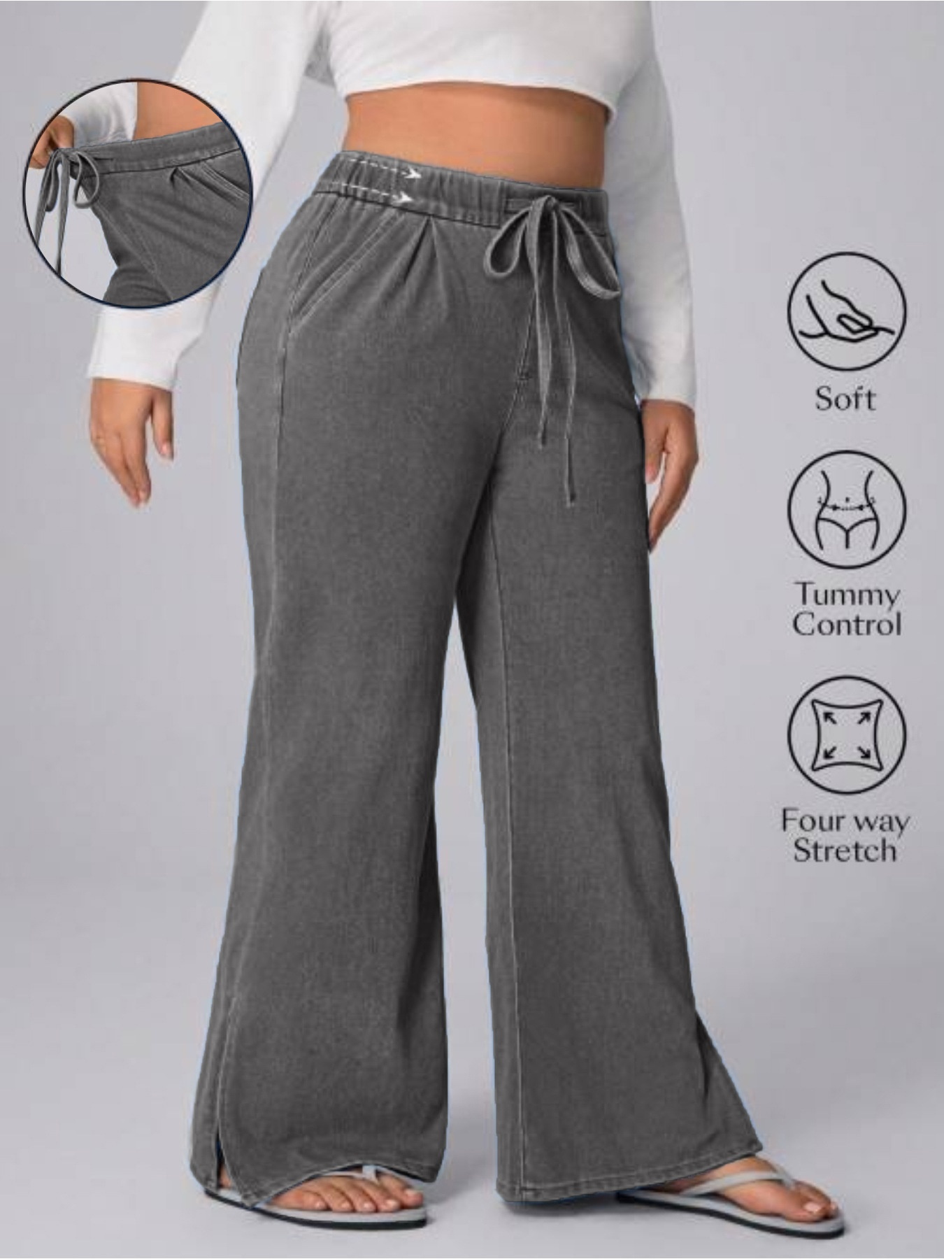 Women's Plus Size Drawstring Casual Loose Wide Leg Jeans