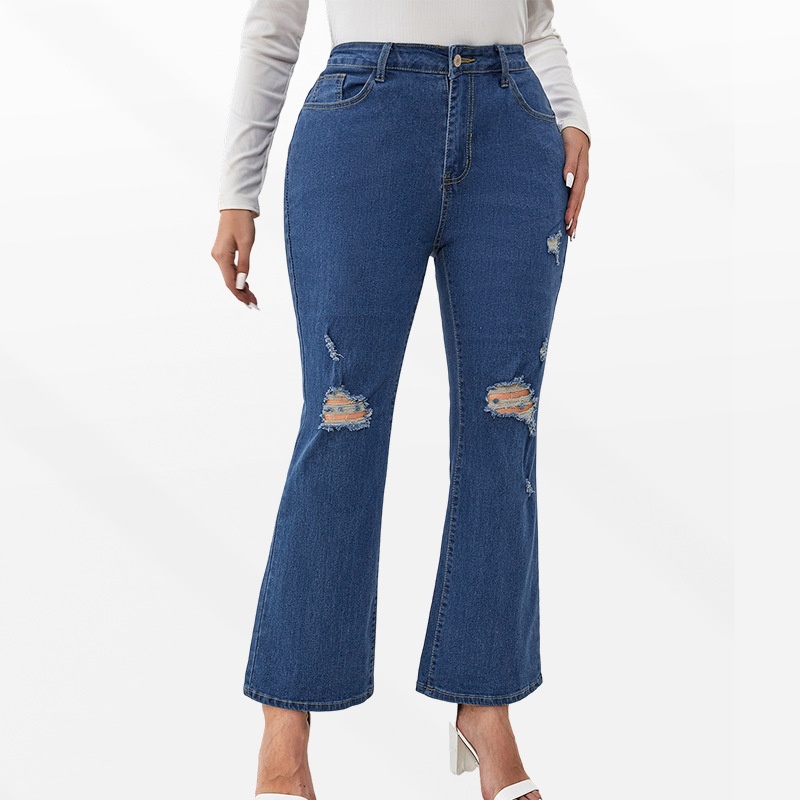 Women's Plus-Size Extra-Large Blue Straight-Leg Ripped Jeans