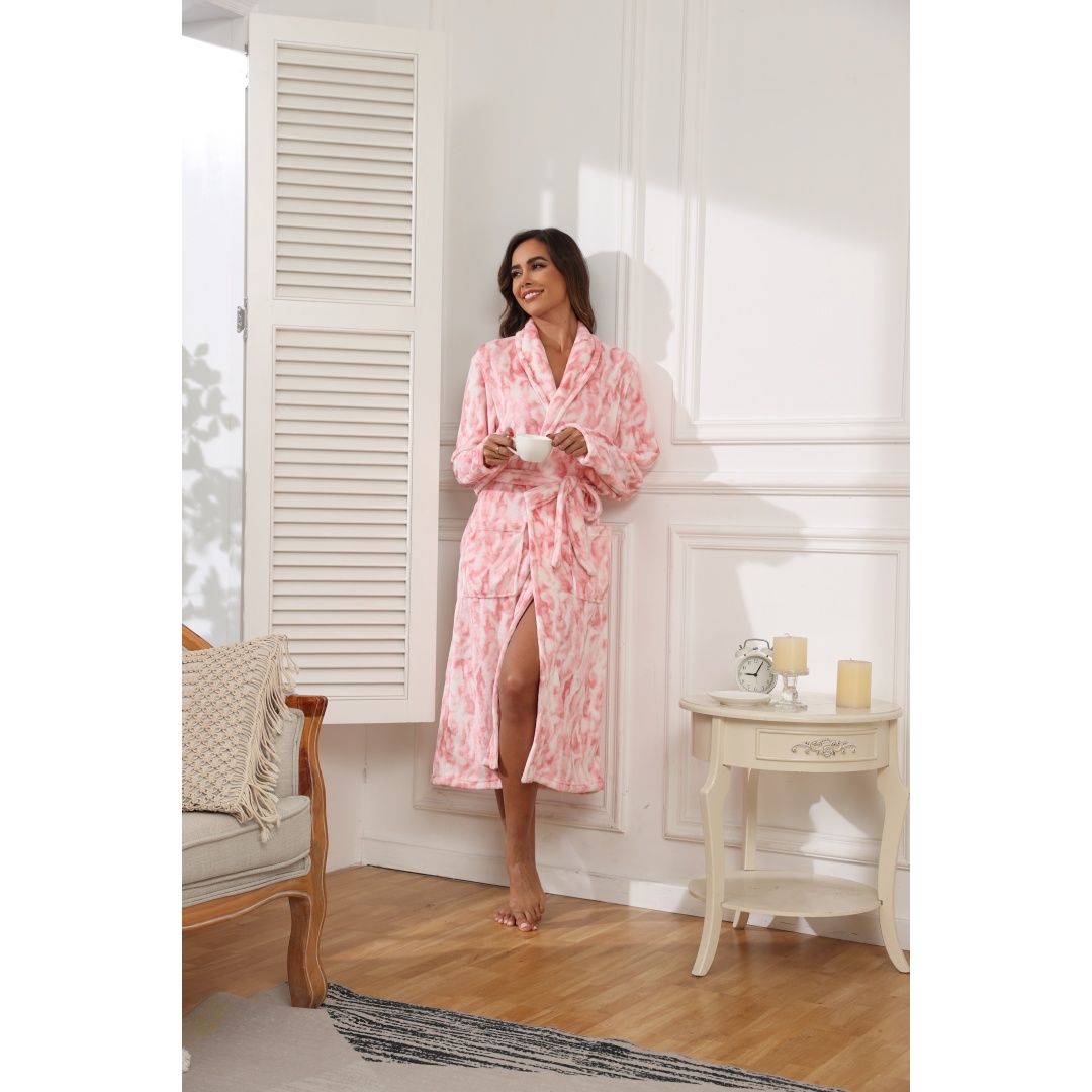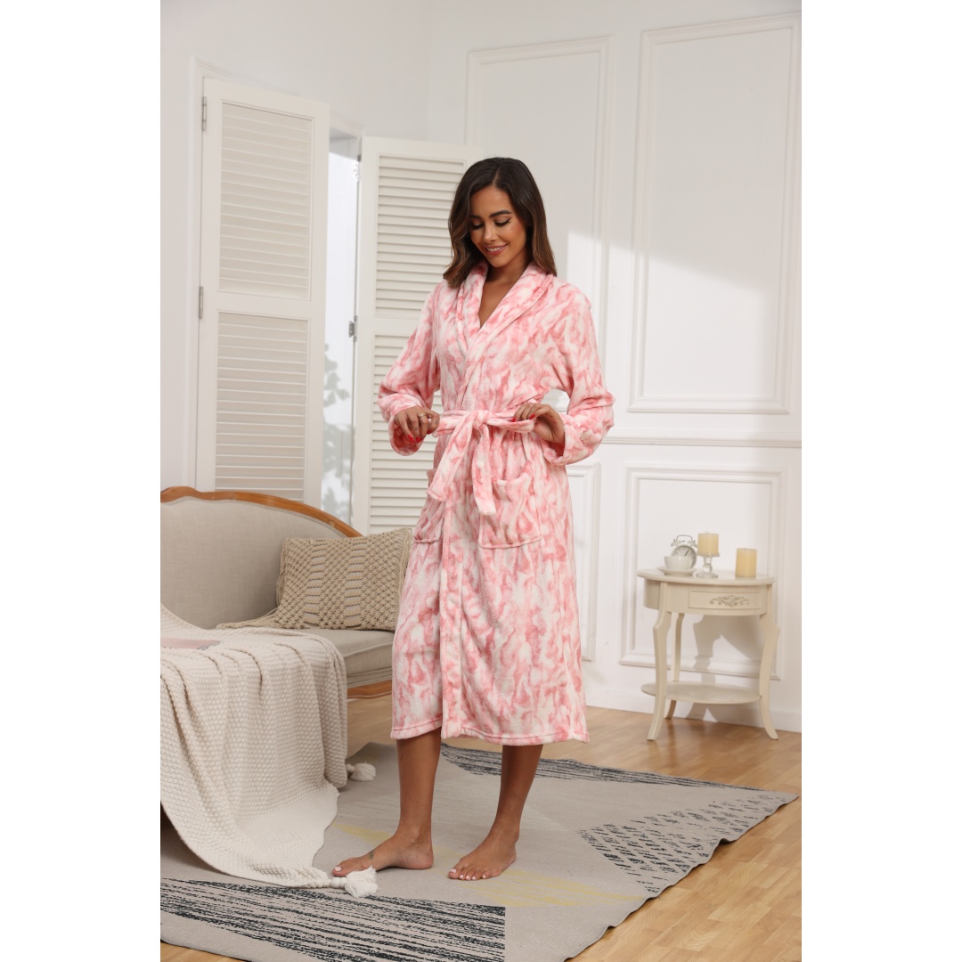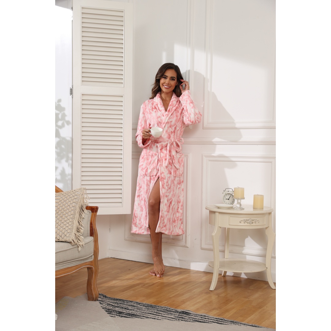 Women's Plus Size Fleece Robe 300GSM Heavyweight Soft Thermal Bathrobe With Pockets And Belt Solid Color Shawl Collar Robe