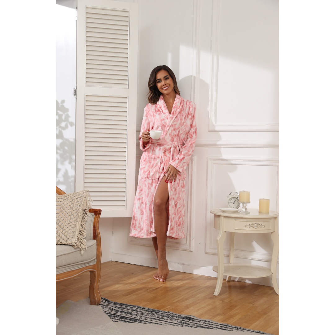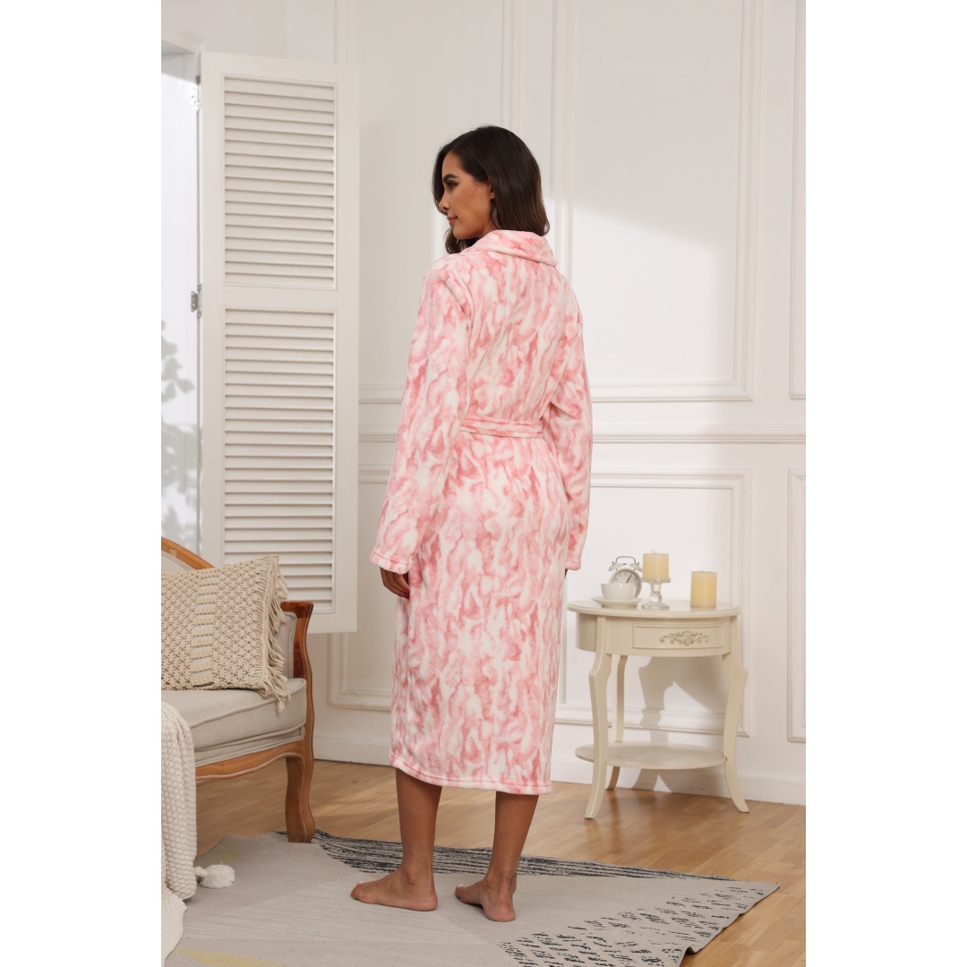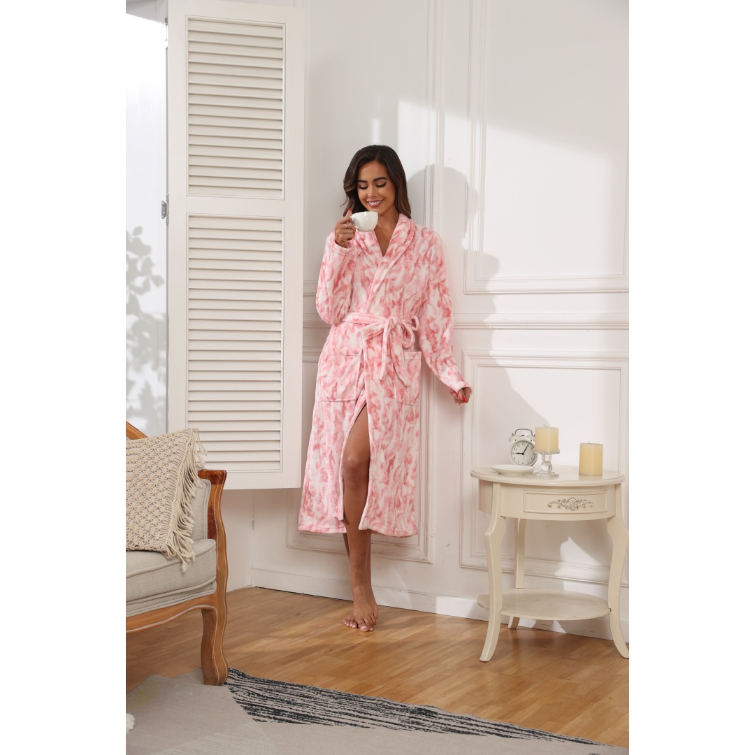Women's Plus Size Fleece Robe 300GSM Heavyweight Soft Thermal Bathrobe With Pockets And Belt Solid Color Shawl Collar Robe