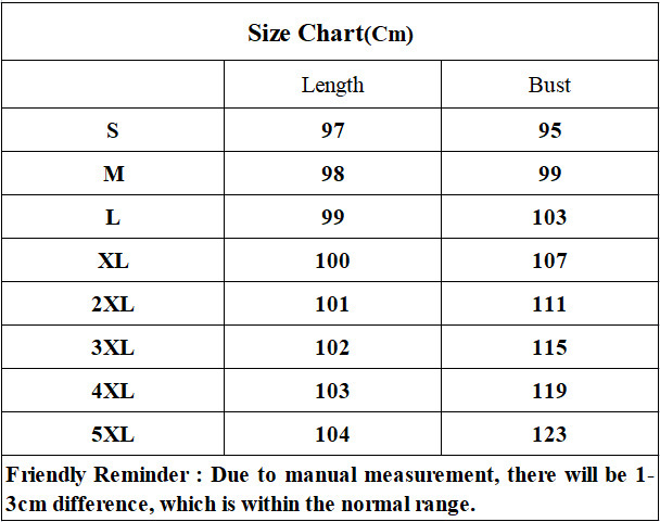 Sizes: S, M, L, XL, 2XL, 3XL, 4XL, 5XL