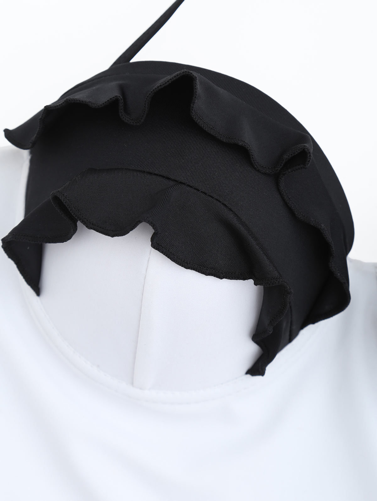 Women's Plus Size One Piece Black And White Patchwork Lace Swimsuit