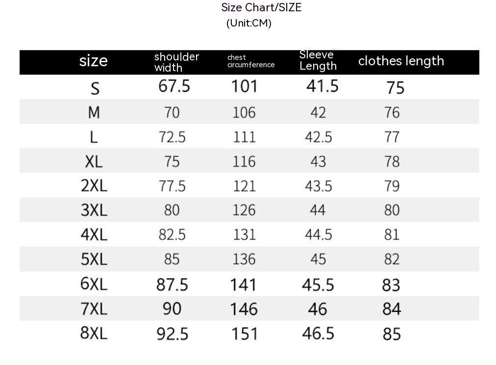Size: S,M,L,XL,2XL,3XL,4XL,5XL,6XL,7XL,8XL