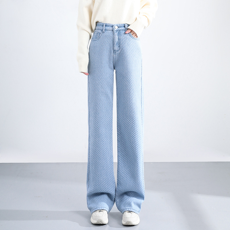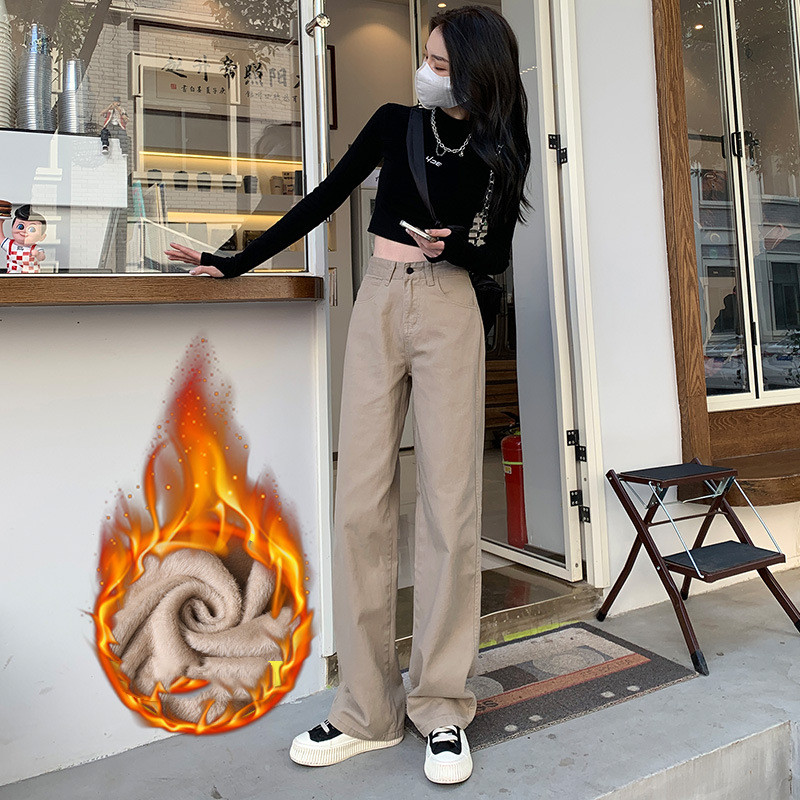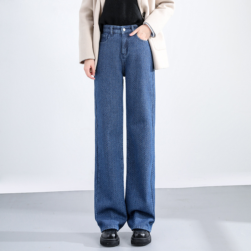 Women's Plush Thick Mopping Wide-leg Jeans