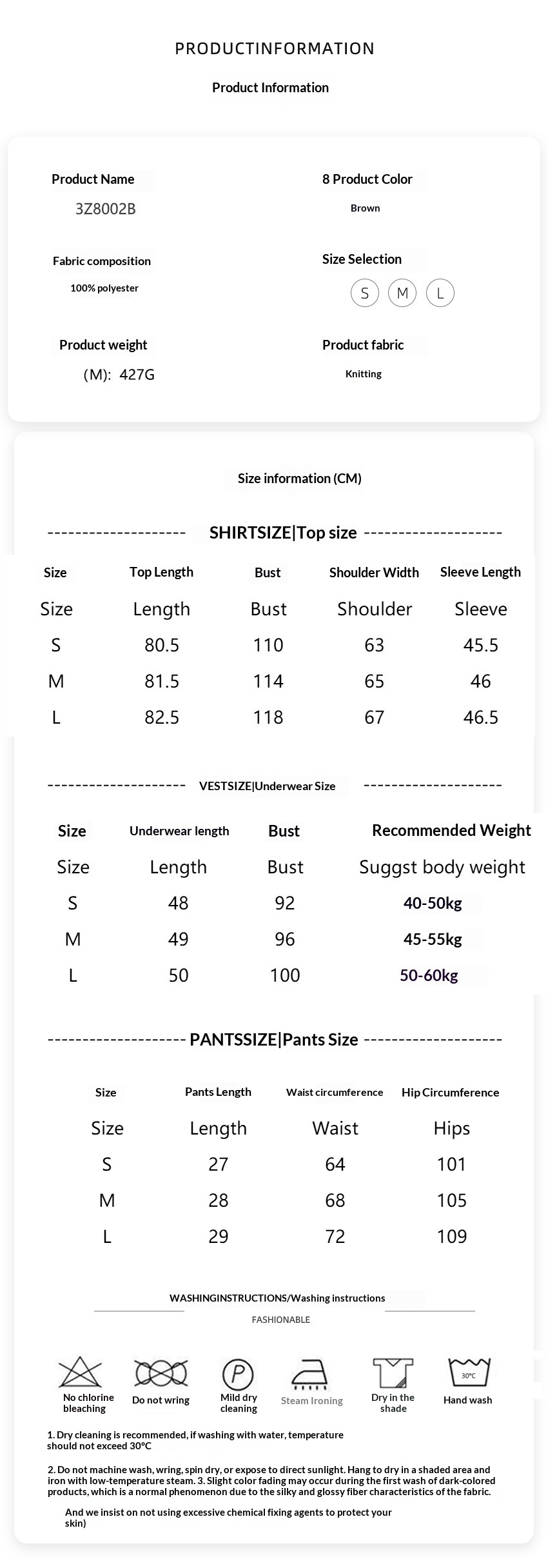 Sizes: S, M, L