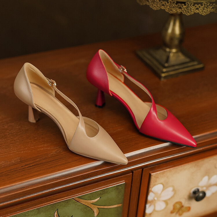 Women's Pointed-toe Hollowed Cowhide Closed Toe High Heels