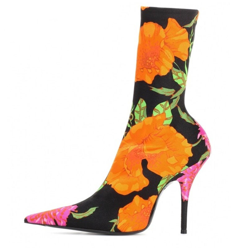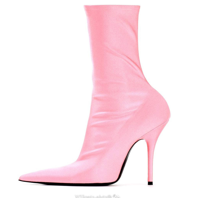 Womens Pointy Toe Elastic Boots, With Colorful , High Heels And Stiletto, Short Socks, New