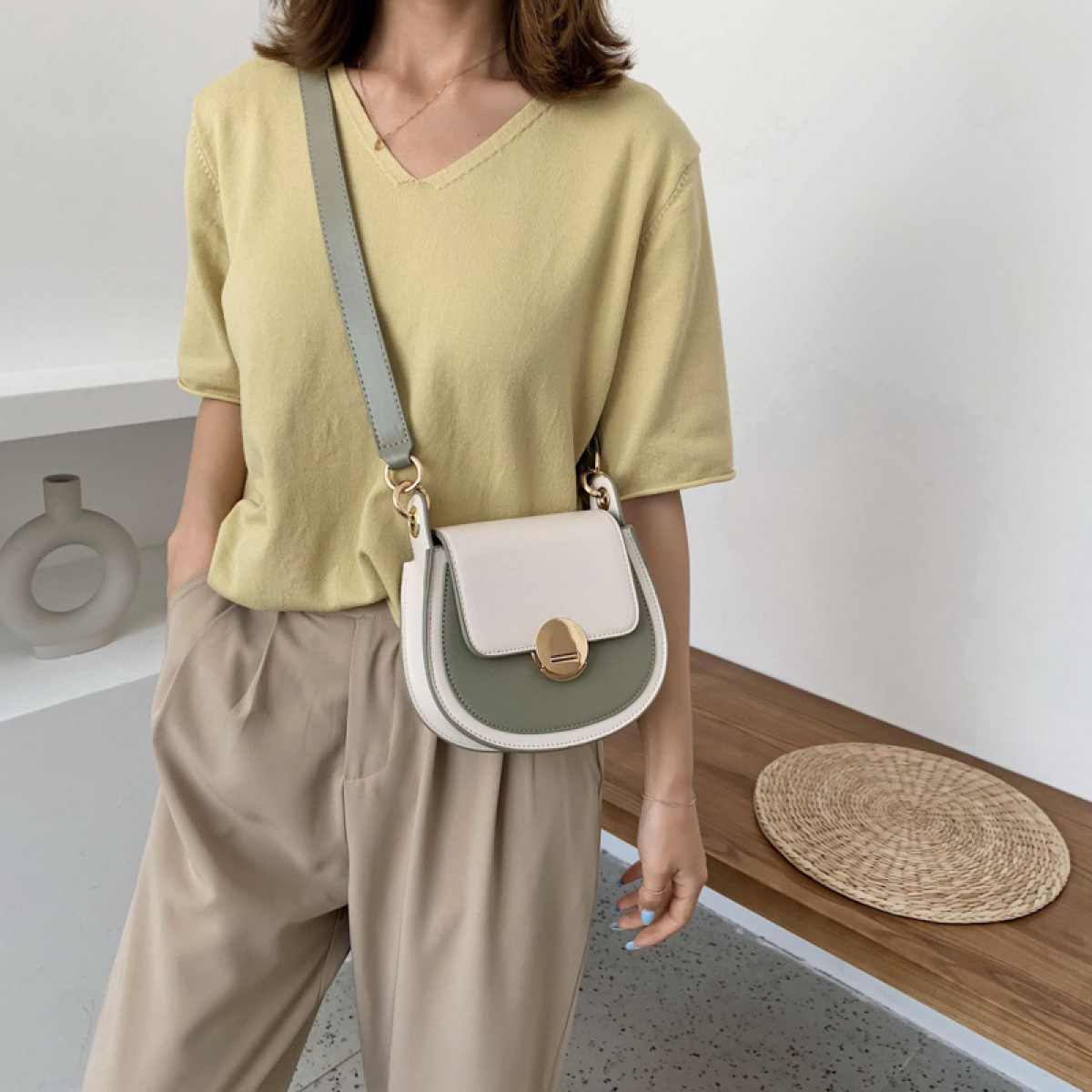 Detail display: hardware hook, hardware lock, rigorous stitching, adjustable shoulder strap, internal capacity