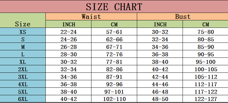 Size; XS, S, M, L, XL, XXL, XXXL, 4XL, 5XL, 6XL