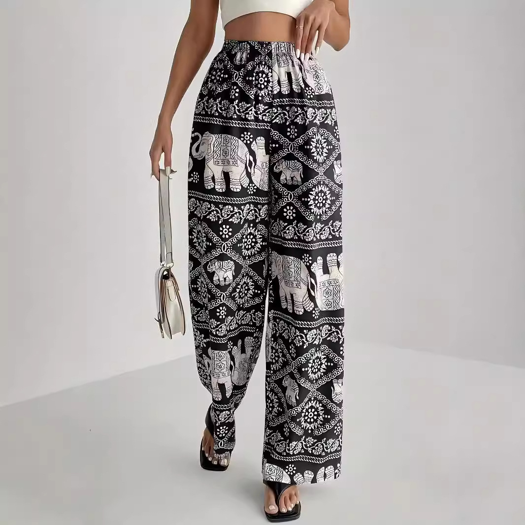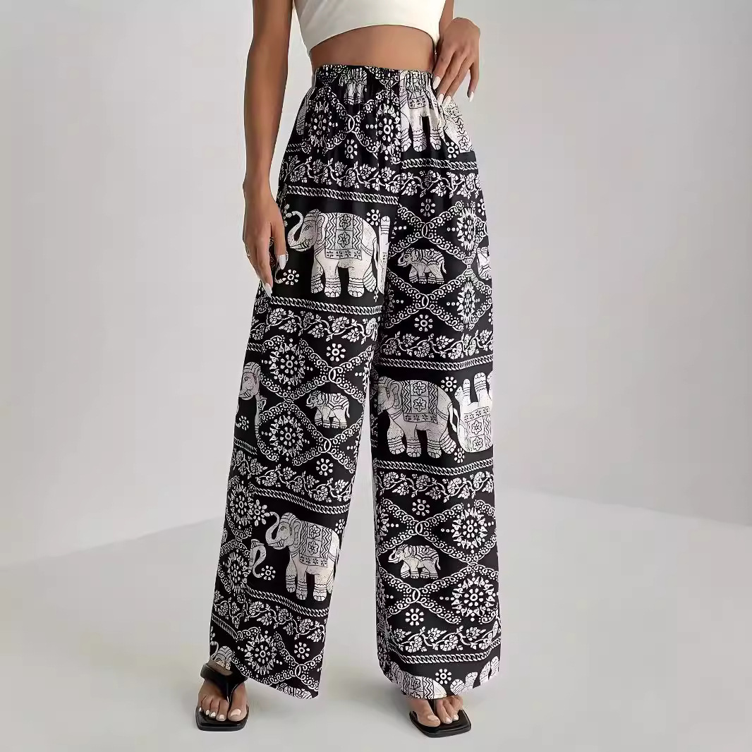 Women's Printed High Elastic Waist Loose Wide-leg Pants