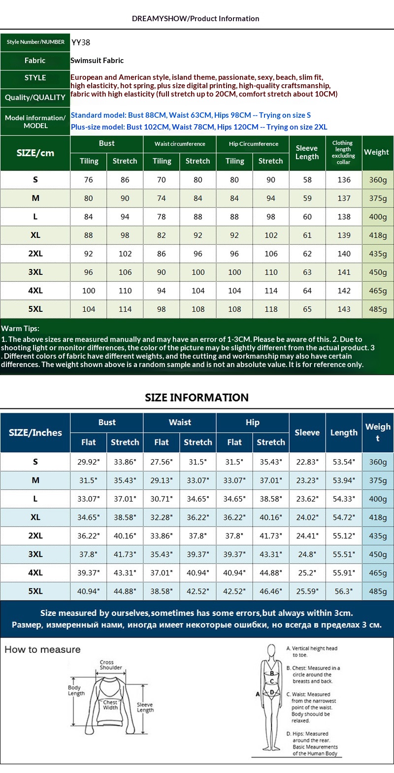 Sizes: S, M, L, XL, 2XL, 3XL, 4XL, 5XL