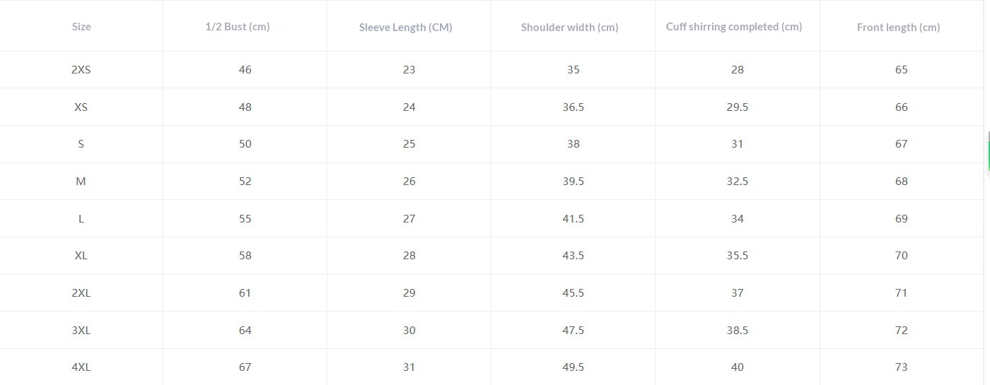 Sizes: XXS, XS, S, M, L, XL, XXL, XXXL, XXXXL