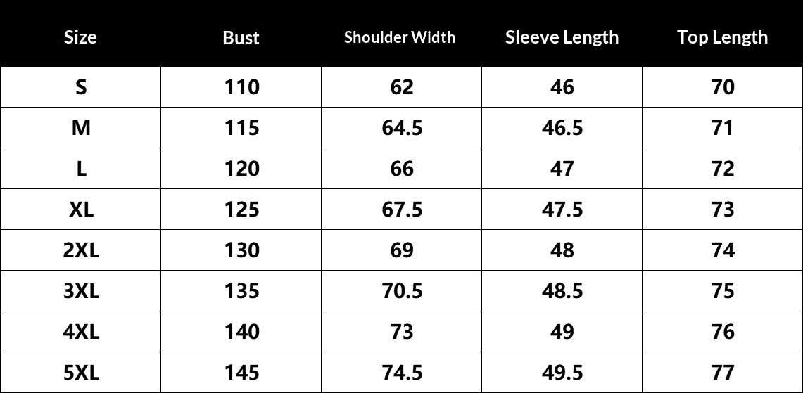 Sizes: S, M, L, XL, XXL, 3XL, 4XL, 5XL