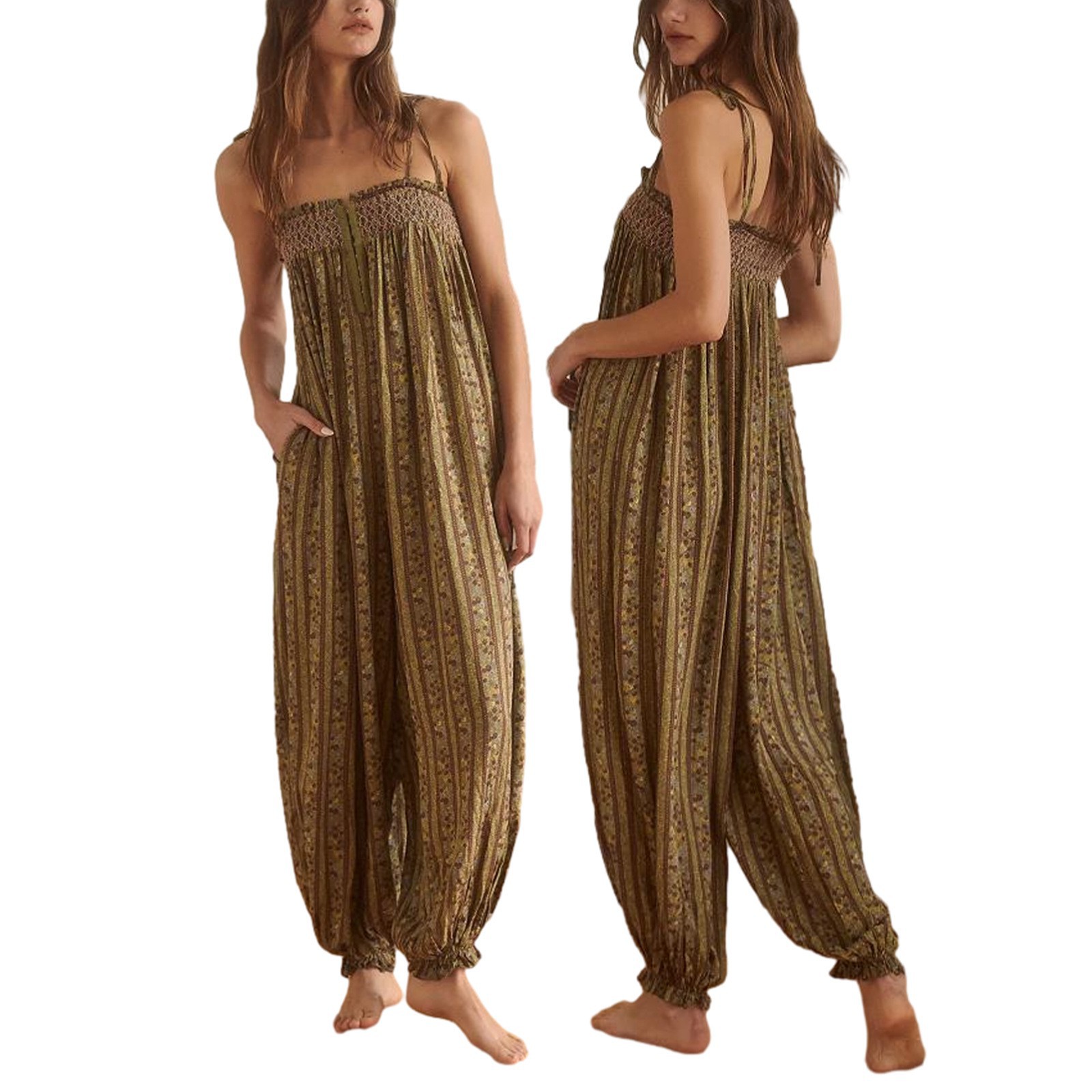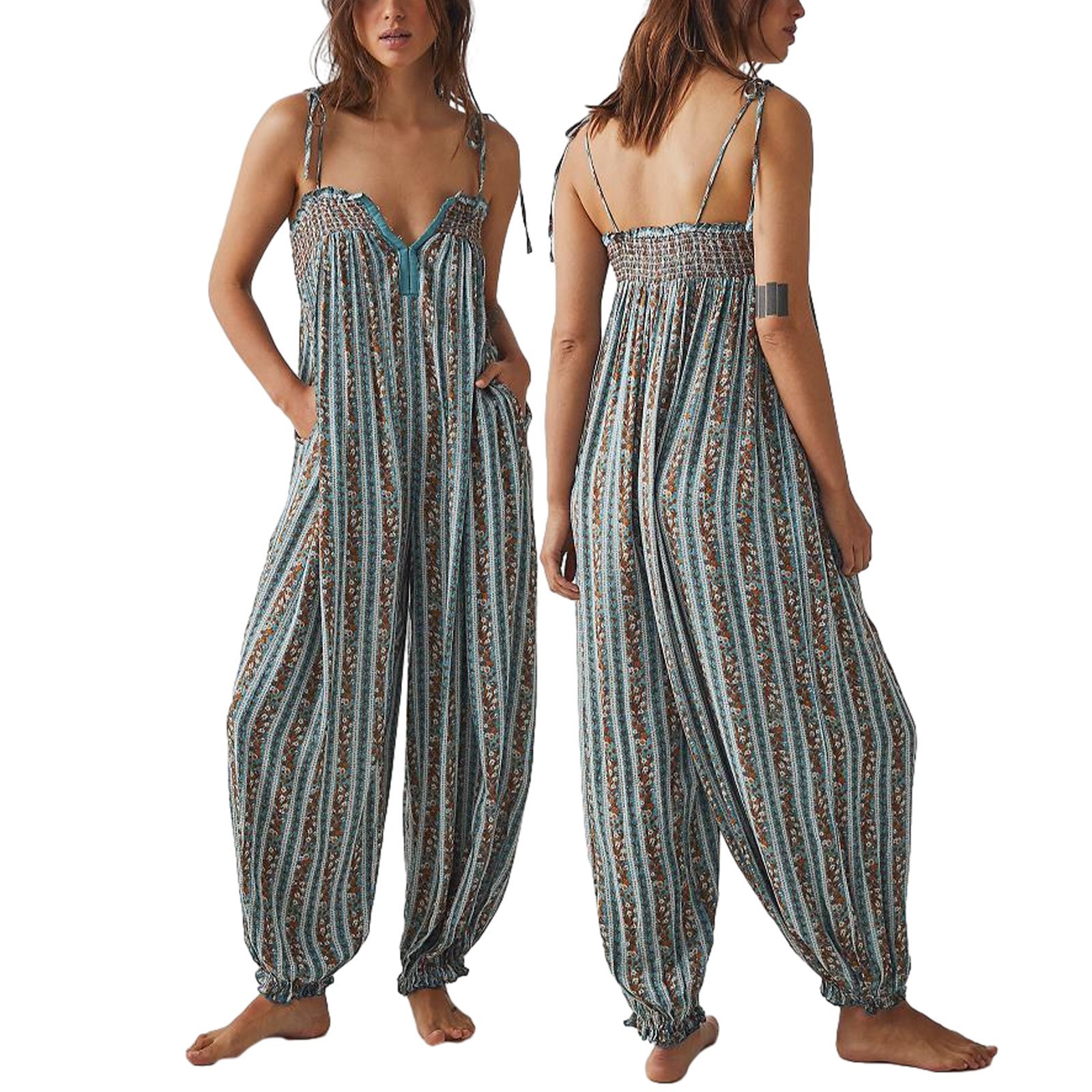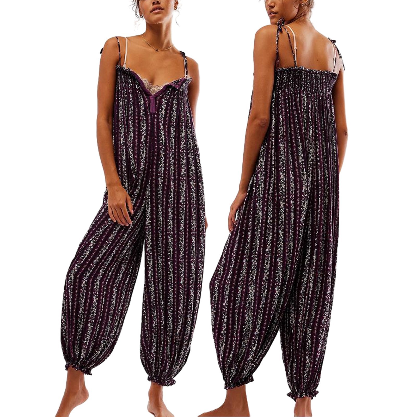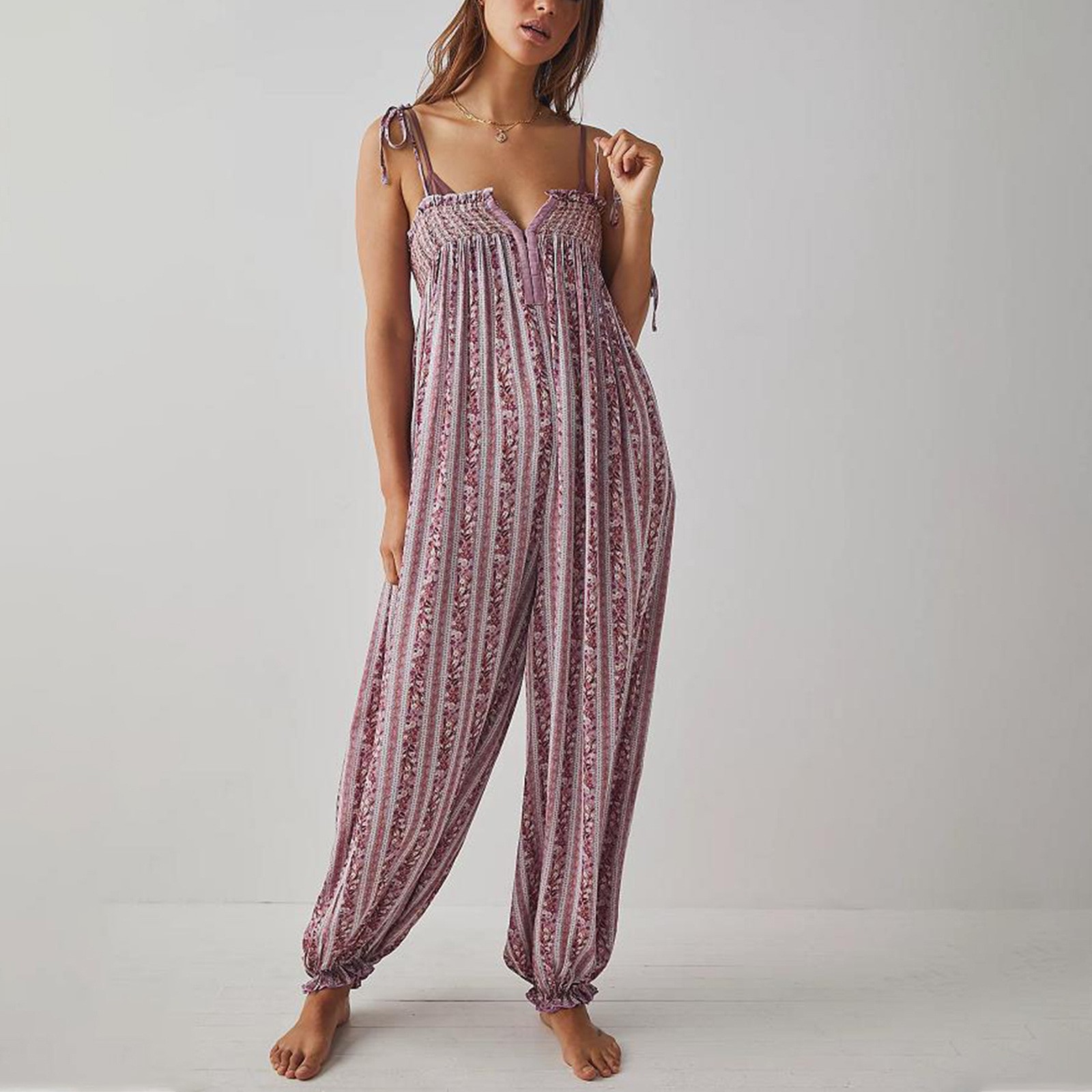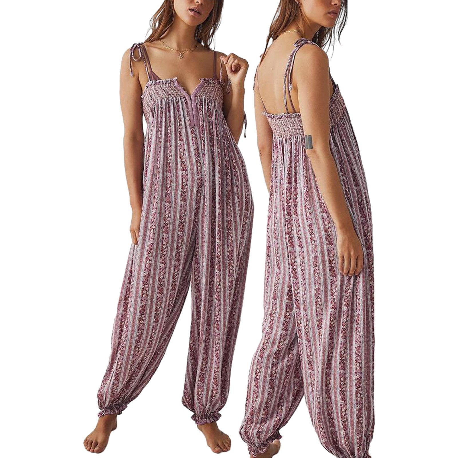 Womens Printed Loose-Fit Figure-Flattering Jumpsuit Pants
