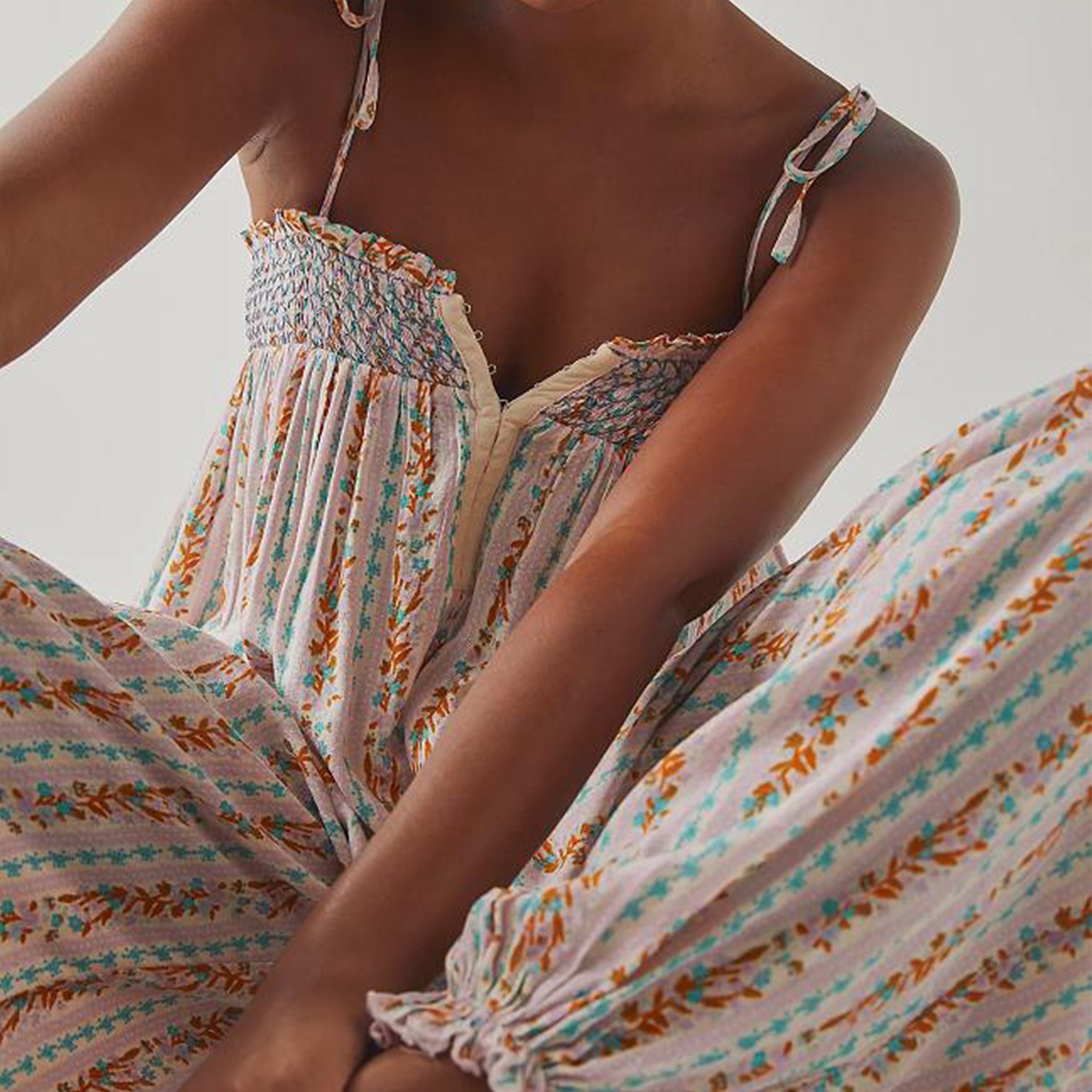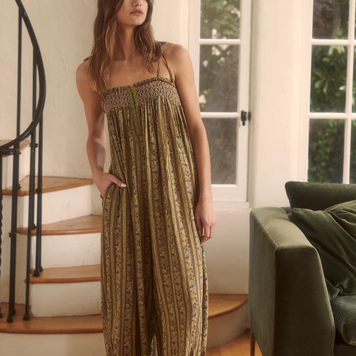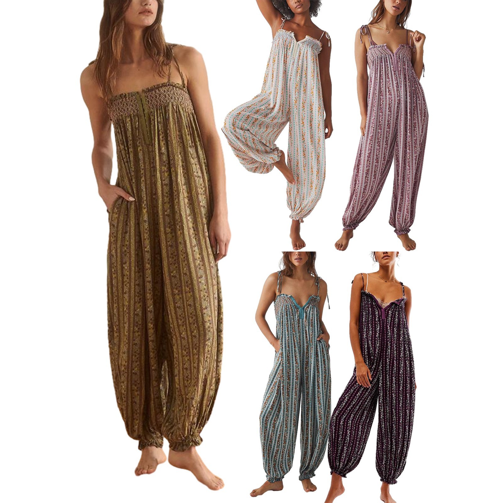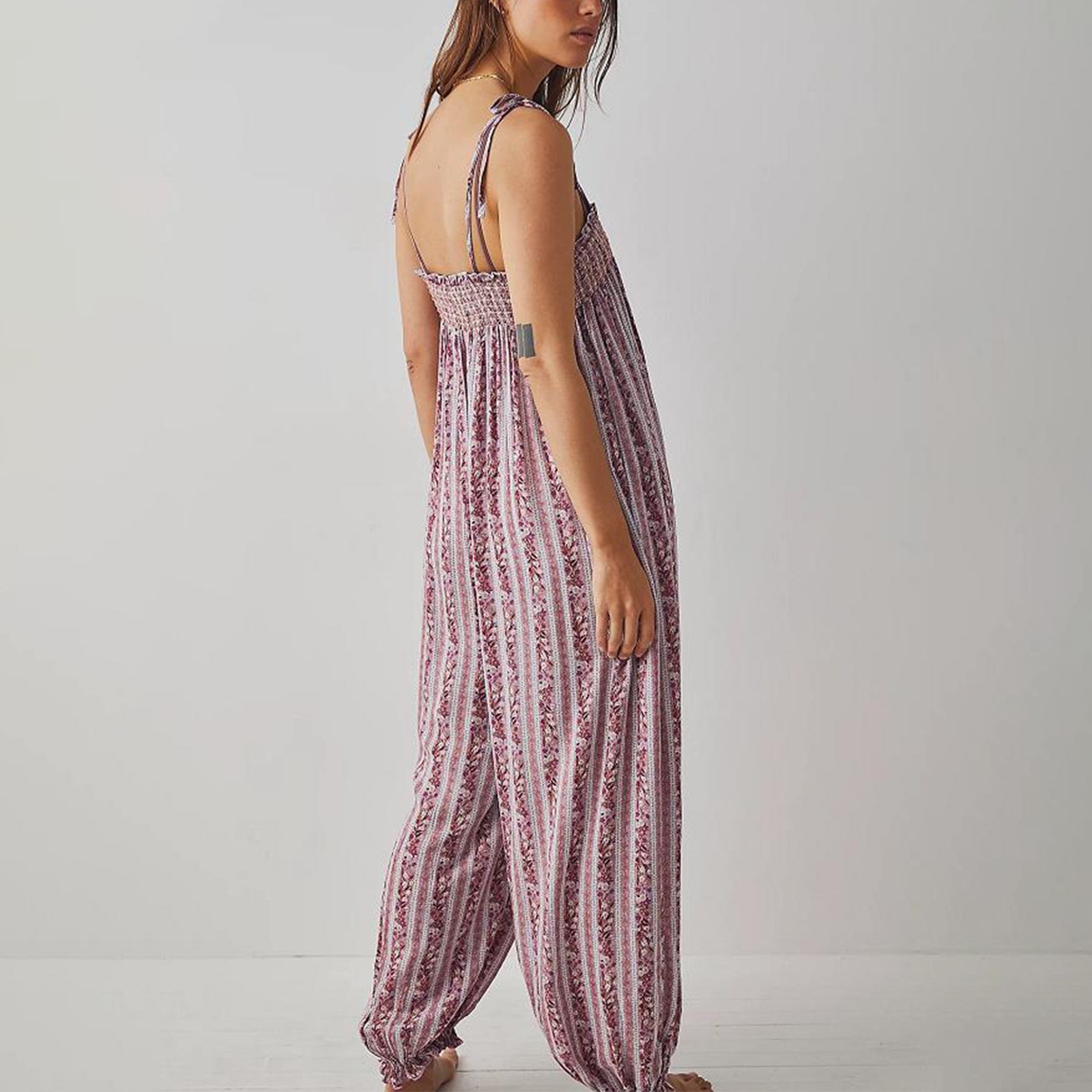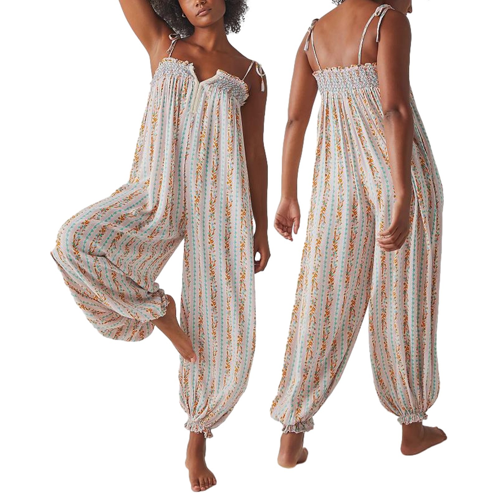 Womens Printed Loose-Fit Figure-Flattering Jumpsuit Pants