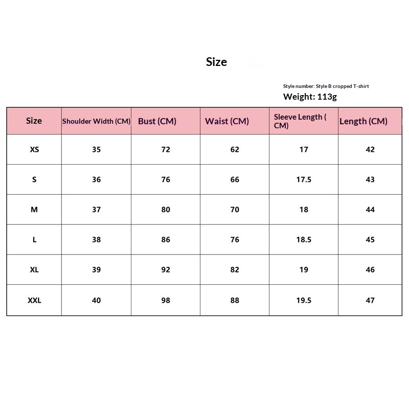 Sizes: XS, S, M, L, XL