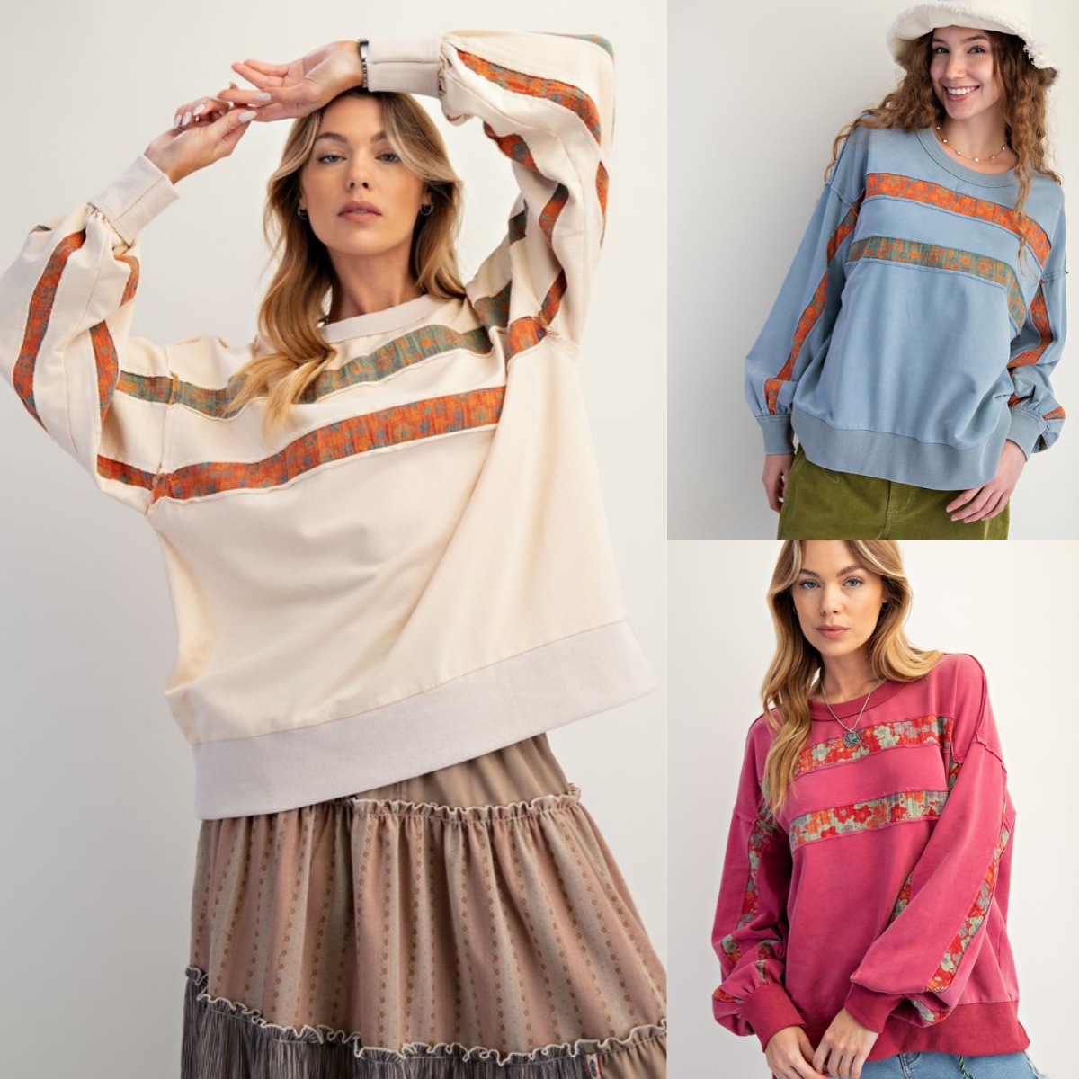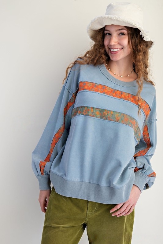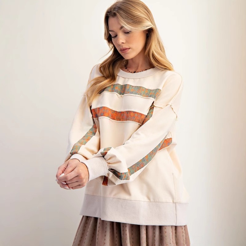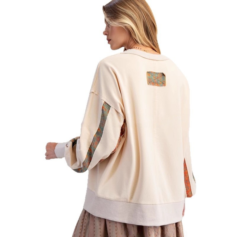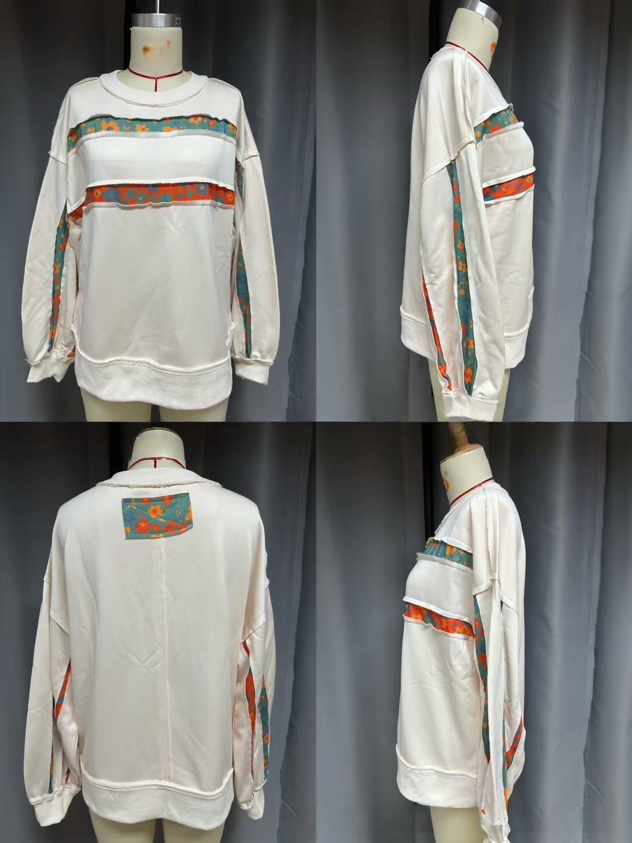 Women's Printed Patchwork Round Neck Pullover Sweatshirt Casual Top