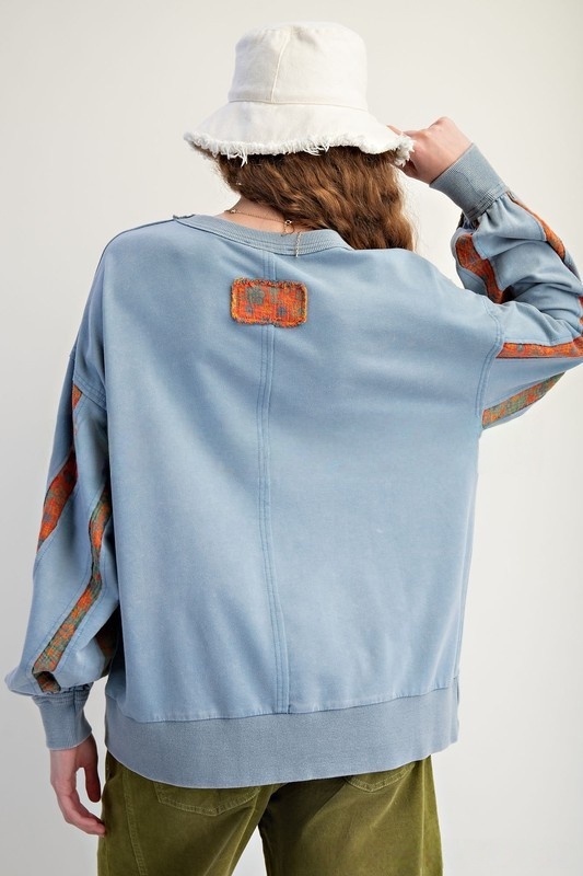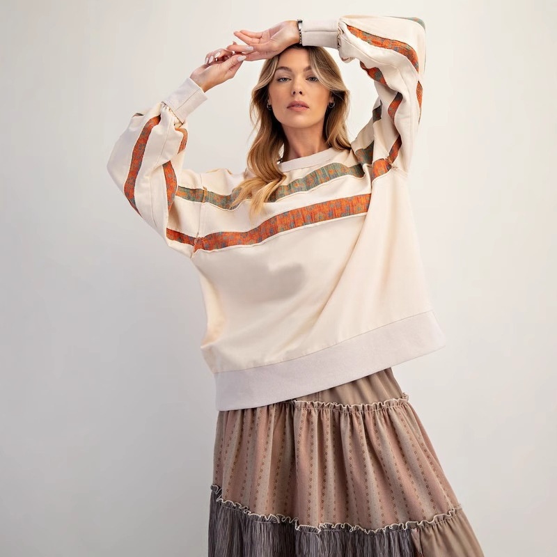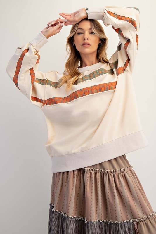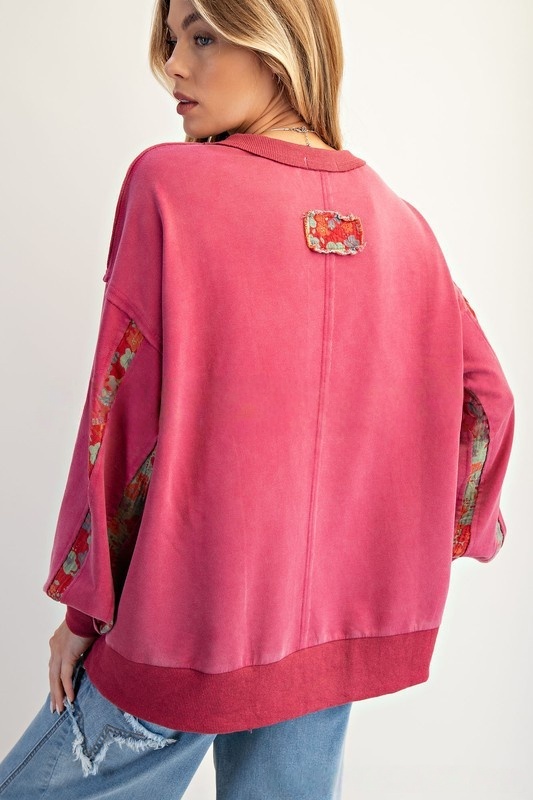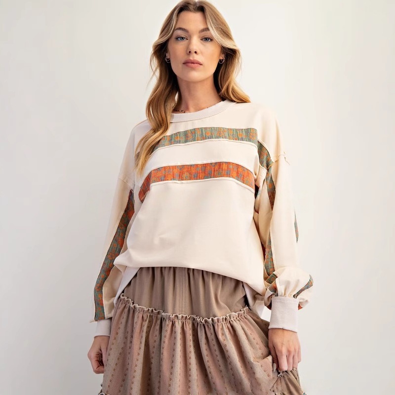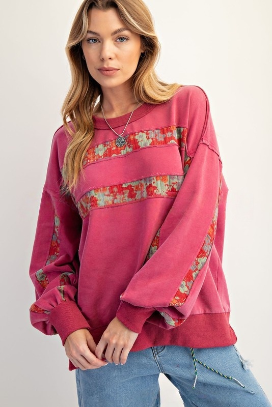 Women's Printed Patchwork Round Neck Pullover Sweatshirt Casual Top