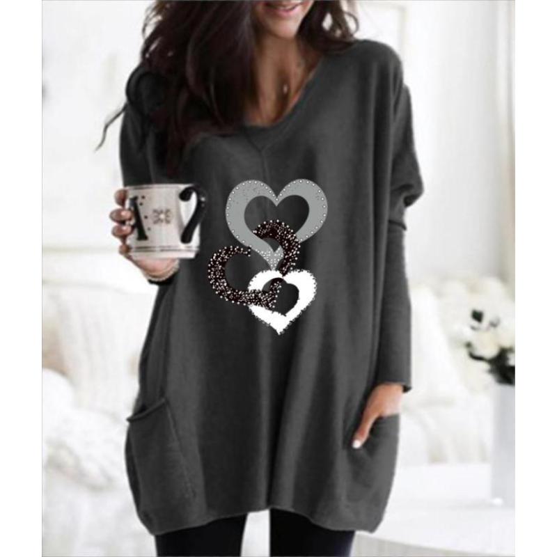 Women's Printed Pocket Round Neck Women's Mid-leng