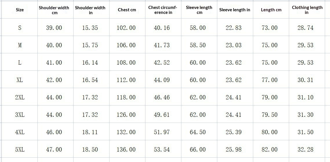 Sizes: S, M, L, XL, 2XL, 3XL, 4XL, 5XL