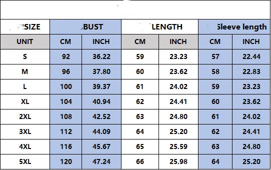 Size: S,M,L,XL,2XL,3XL,4XL,5XL