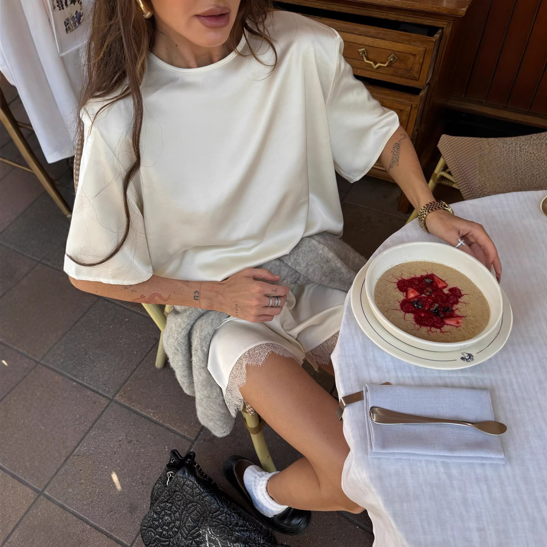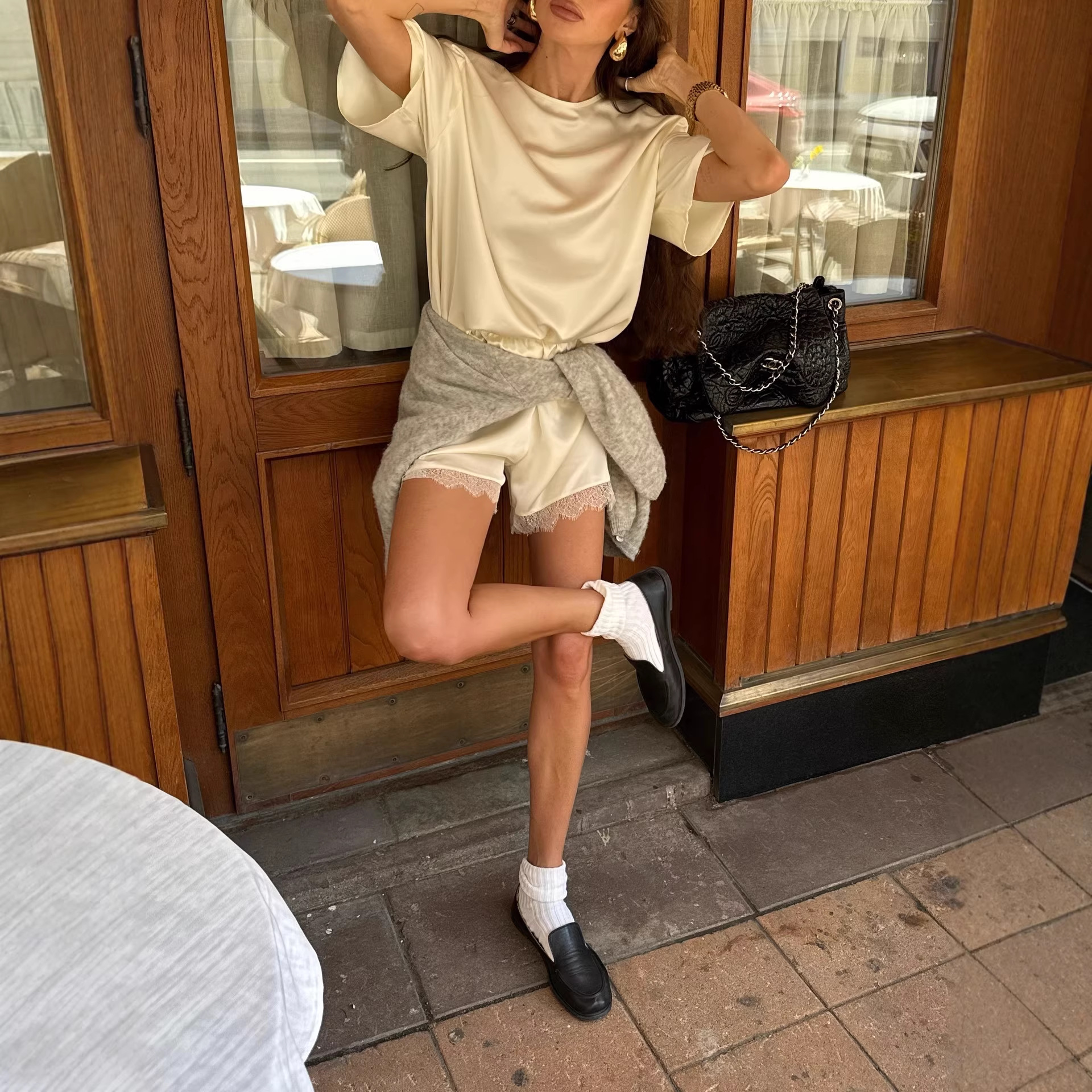 Colors White, Pink, Yellow, Sky Blue Pants Length Cropped Sizes S, M, L Style Category Street Fashion Trendy Elements Patchwork Sleeve Style Regular Sleeve Main Fabric Composition Polyester Fiber