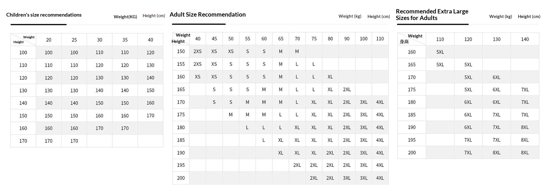 Sizes: XS, S, M, L, XL, 2XL, 3XL, 4XL, 5XL