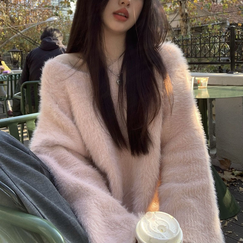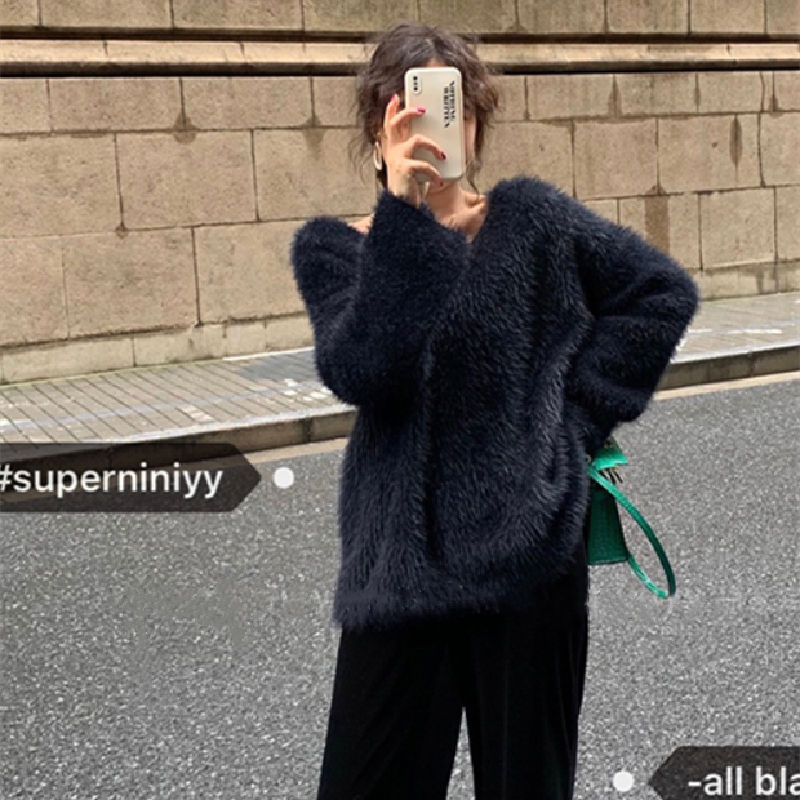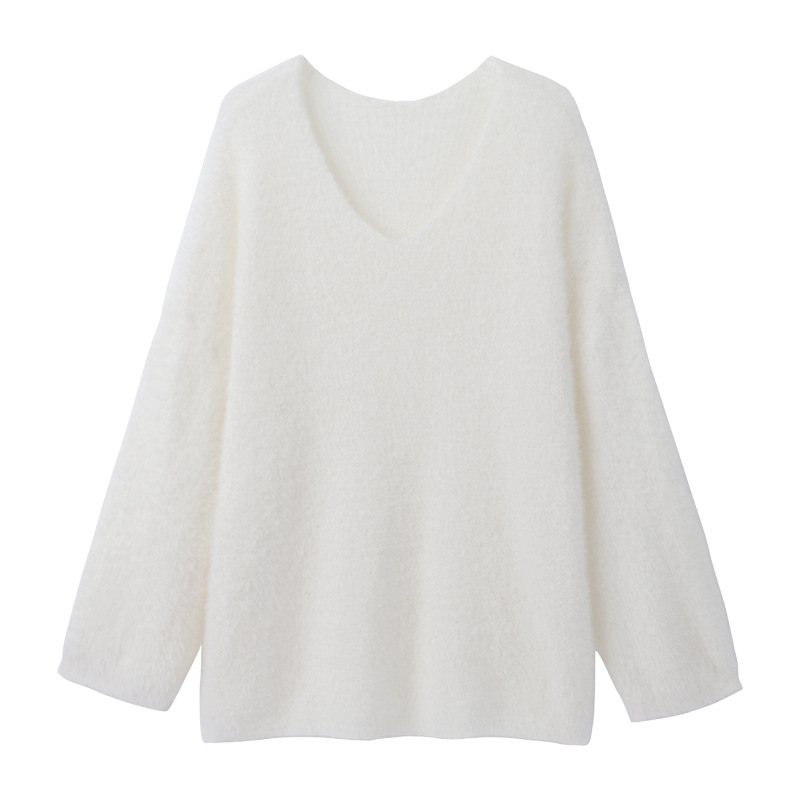 Women's Pure Color All-matching V-neck Off-shoulder Pullover
